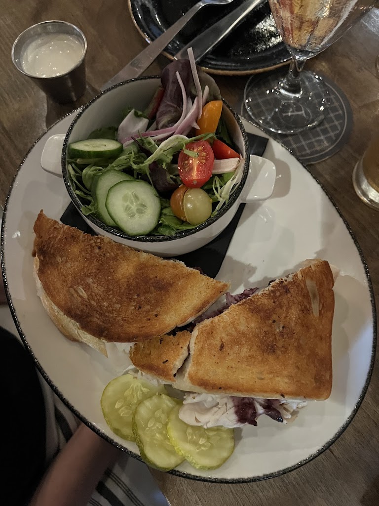 The atmosphere was great, the food was probably the worst part, went with a party of 5. I had wings with the whiskey rye sauce on them, the sauce was bland 2 of the wings were tiny, and all of them were dry and overcooked. 2 friends had burgers they both tasted good but both were overcooked, they asked to be cook medium. French dip was the best part, highly recommend that. Drinks were fabulous all tasted great. Our service was ok, young blonde lady very nice but never seemed to ask if we needed refills. We all had empty drinks for 10 min, and then finally asked us, then continued to take 10 more minutes to get our drinks. I would go back for drinks at the bar but not the food.