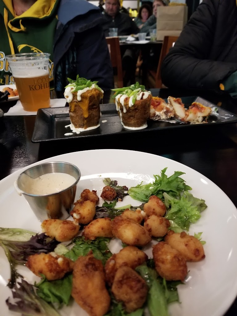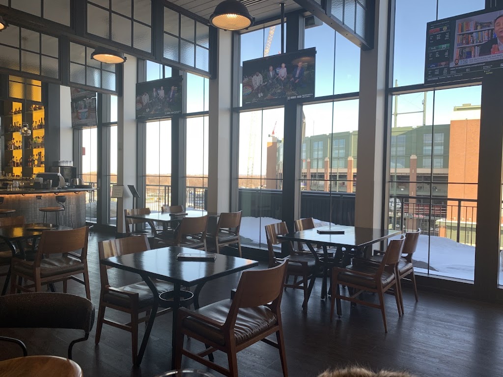 Stopped in for drinks and apps with coworkers, had a great time! Outdoor seating, when the weather plays along, is great. Views of legendary lambeau field. The interior of the bar is clean and mondern, offering plenty of find liquor choices and multiple wine/beers. Apps were fine.