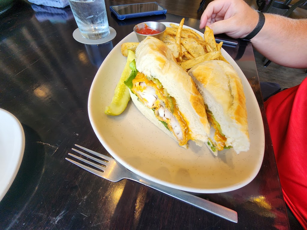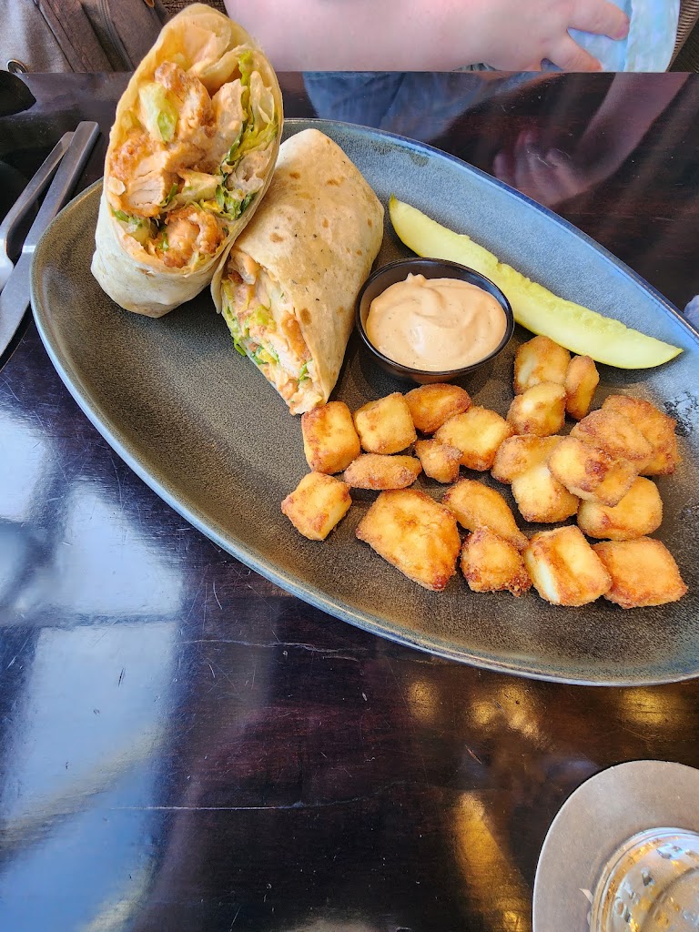 I had the tacos my husband had the brat sandwich and we had the beer cheese soup. This place was not good. I couldn't even eat the tacos the shell was like a stale paper towel and the beer cheese soup was curdled and way too salty. I was surprised by this because of its location and it is a fancier restraunt. It's pricier. Will not return. Do not recommend.