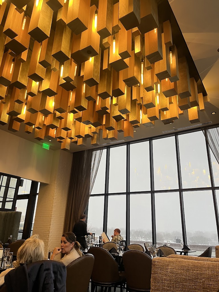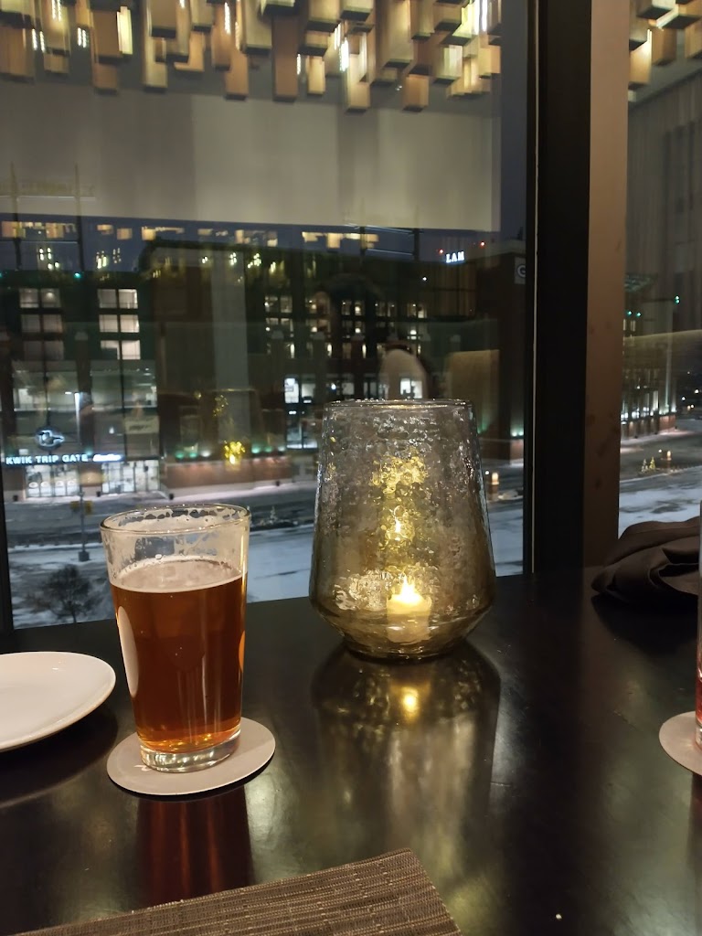 The experience at Taverne in the Sky is definitely memorable. The server, Kim, does a wonderful job talking about the menu and taking care of her guests. Kudos to the kitchen staff for the great tasting appetizers (the featured pot stickers and it's spicy sauce was so good!), entrees (the farro with the salmon, yum!!) and desserts (highly recommend the carrot cake!). The atmosphere is very comfortable and welcoming, along with a great view of Lambeau Field and the city streets.