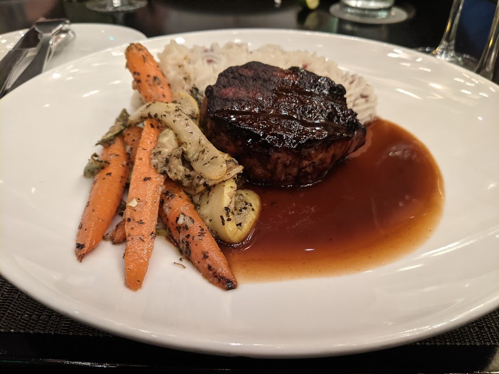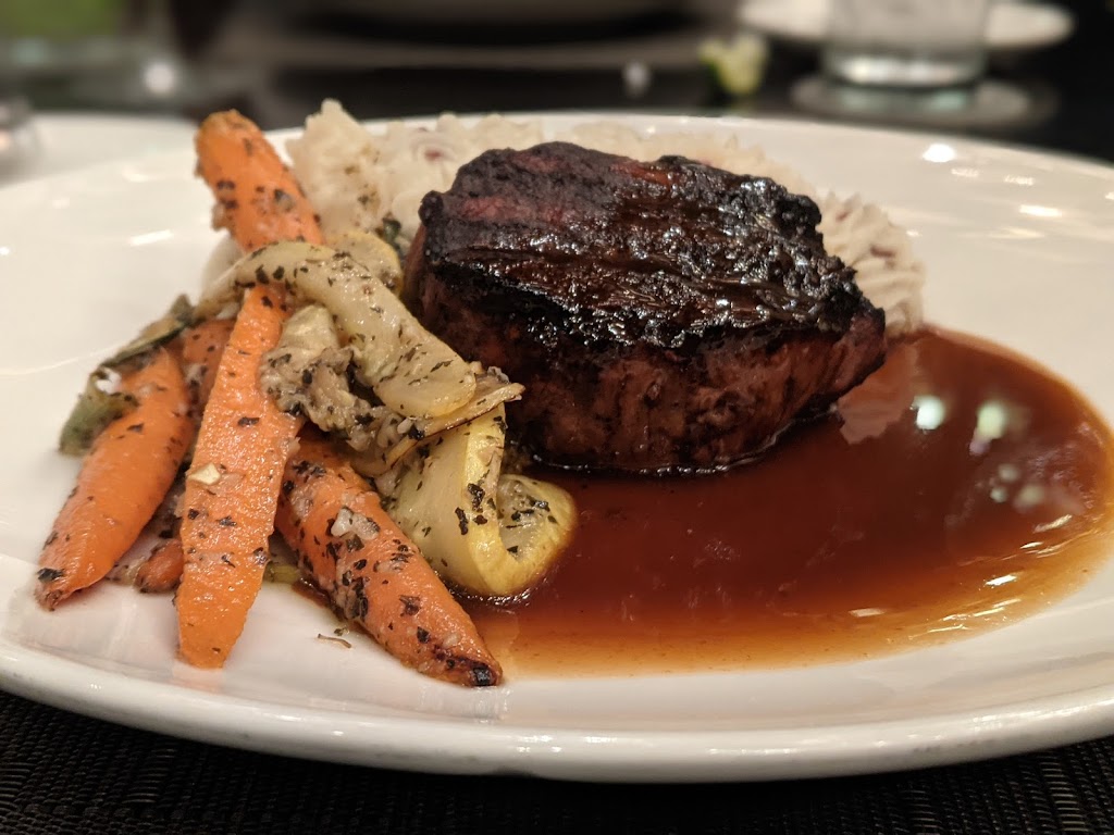 The filet was exceptional. The seasonal desert wasn’t a favorite but the filet was cooked perfectly with an exquisite sauce.