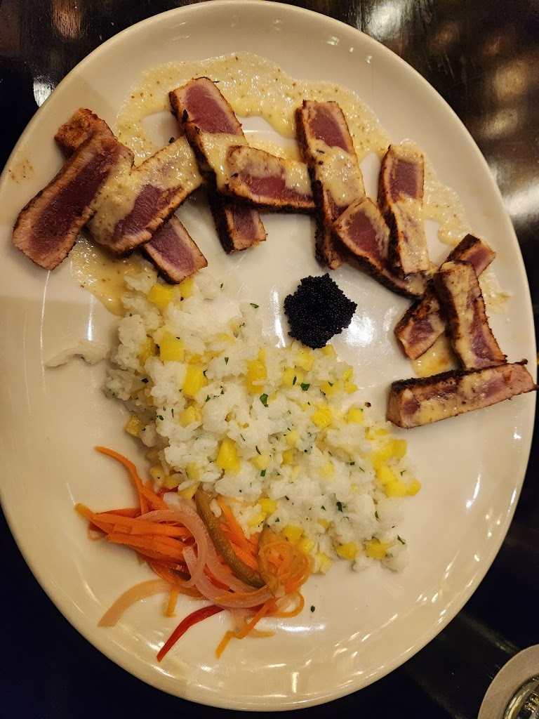 We had white Russians for dessert and they were perfect. The server was very professional and laid back. Other than serving the bad tuna I can only give praise.