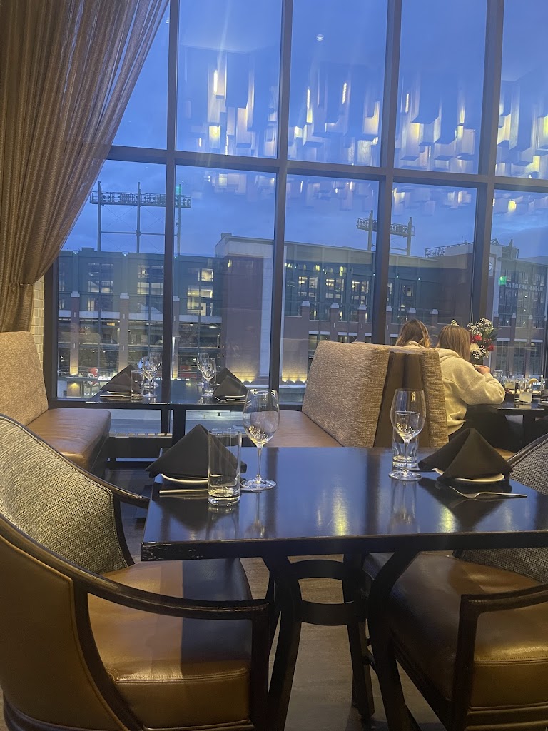 Located directly across the street from Lambeau Field on the top floor of the Kohler Hotel. Very nice space; open but inviting. Staff were all excellent. Food was very good. Tried the beef fillet, pork tenderloin and the walleye. The most critical comment was “the fillet is not as good as (the best steak I’ve ever had.)” All told, we will be back.