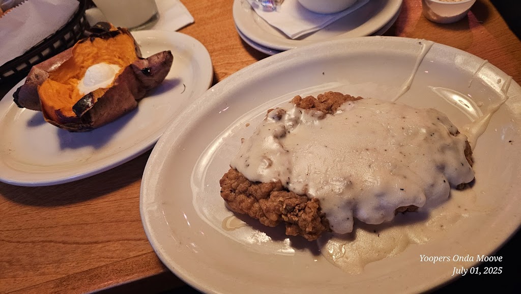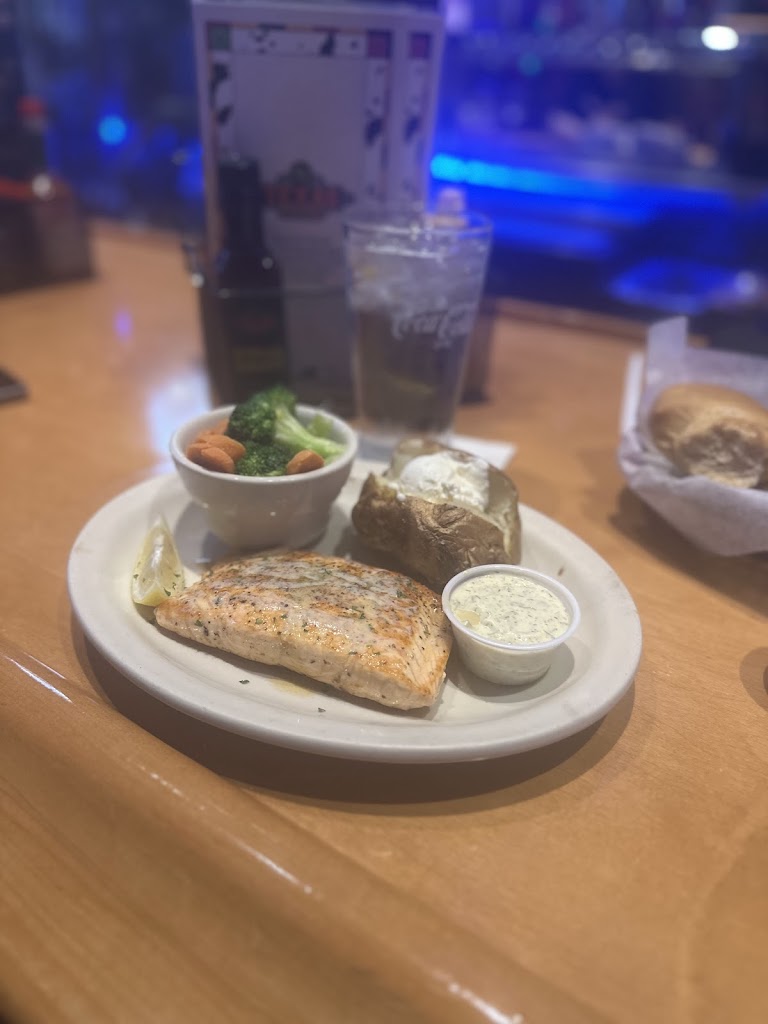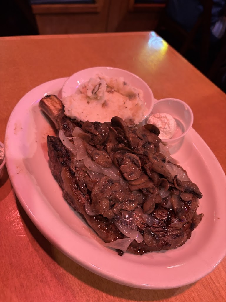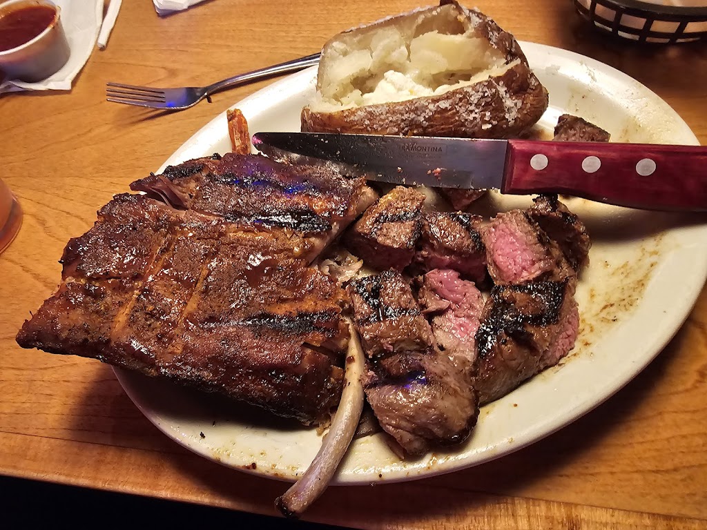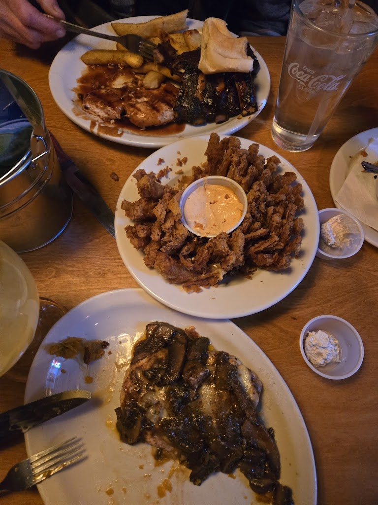 Had the double pork chops with the baked potato loaded and some green beans and three baskets of rolls with the cinnamon honey butter