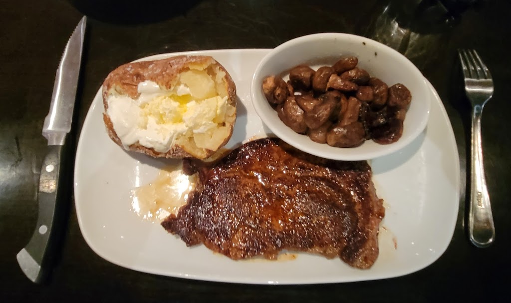 I was going to have the Prime Rib but they ran out. I ended up going with the Rib Eye Steak, it was good, they cooked it perfectly. I also had the baked potato and chili for the sides. The chili was very good, full of great flavors and tender meat. The baked potato was also made just right.