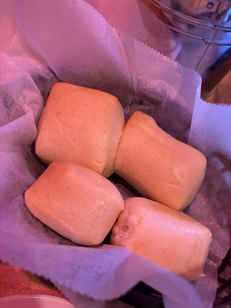 The food: They start you out with the amazing fresh baked bread and cinnamon honey butter.