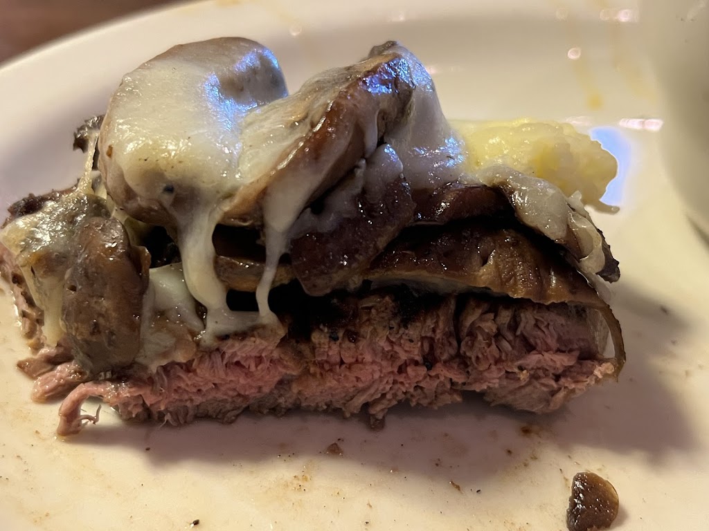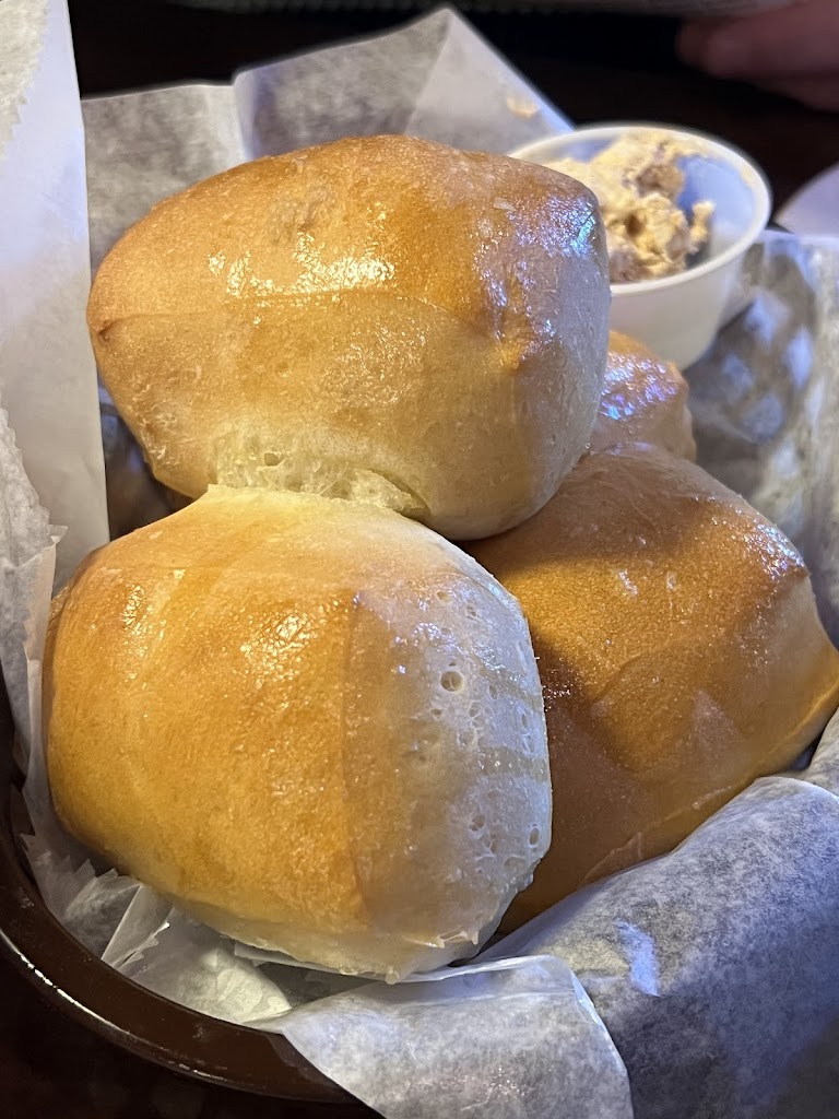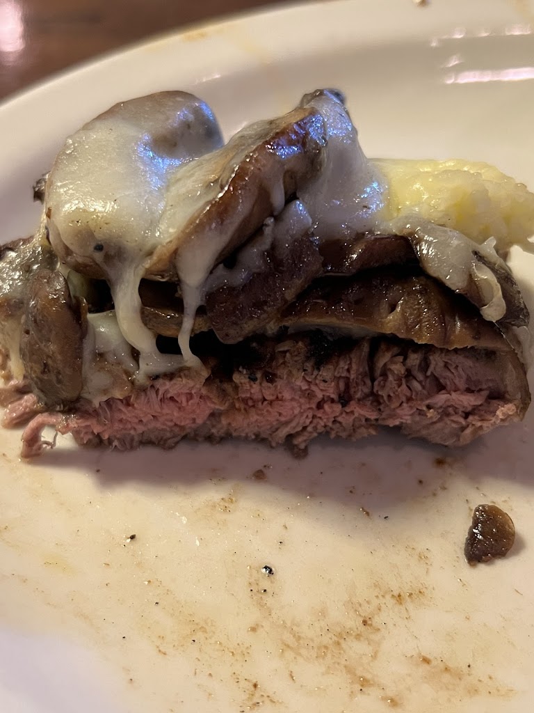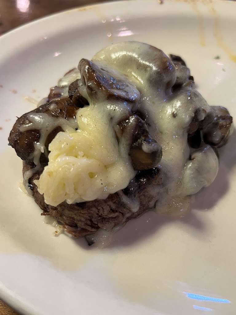 For my entree I went with their 6oz Dallas Filet, smothered in jack cheese and sautéed mushrooms. My steak was done medium just as I requested and was satisfyingly tender. I've had cuts from more high-end steakhouses that had more of a "melt in my mouth" feel, but for a chain this was alright. Being a Cheesehead I loved that there was an option to add melty jack cheese and found it paired nicely with the meat and sautéed mushrooms. Well done Texas Roadhouse, this steak is Doughboy approved 😋