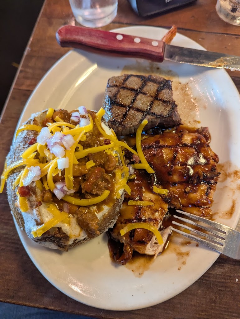 Ribs, shrimp appetizer, shrimp dinner. Was alright. Liked the hot baked potato.