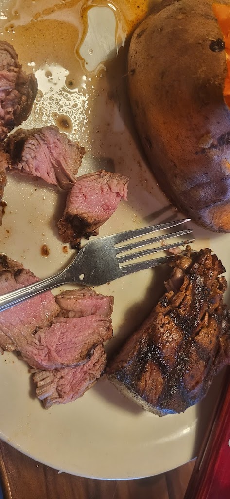 Very nice and friendly but the steak was fatty and stringy and medium rare instead of medium well as ordered. Mushrooms tasted way past prime. Sweet potato and rolls with butter were fantastic!