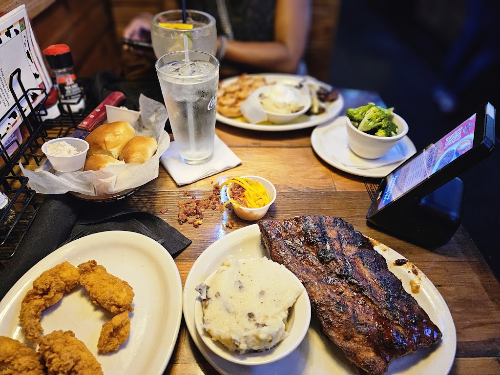 went for dinner and joined the wait list before I even left the house. so when we got there we only waited a couple minutes. music is really loud, so you can not have a normal conversation and the waitress can not hear you. so we all had the repeat our order. I guess that's why all of our steaks where not cooked the way we ordered. Mac n cheese had no flavor. ribs and chili was great. waitress did asked how the food was, and I had to tell her to refill the drinks. lady you work for your tips, so don't complain.
