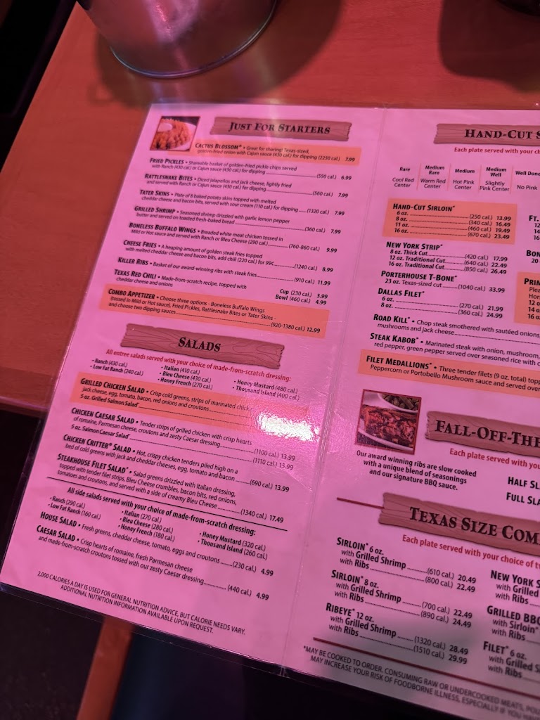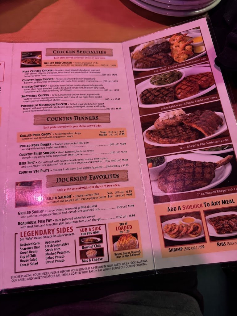 We arrived right at opening at 3PM. We were sat quickly and the staff seemed happy, friendly, and well trained. We enjoyed the sides that came with our meals, the steak was good, and of course you can’t go wrong with the rolls. Highly recommend the sangria flavored margaritas and their $5 Long Islands!