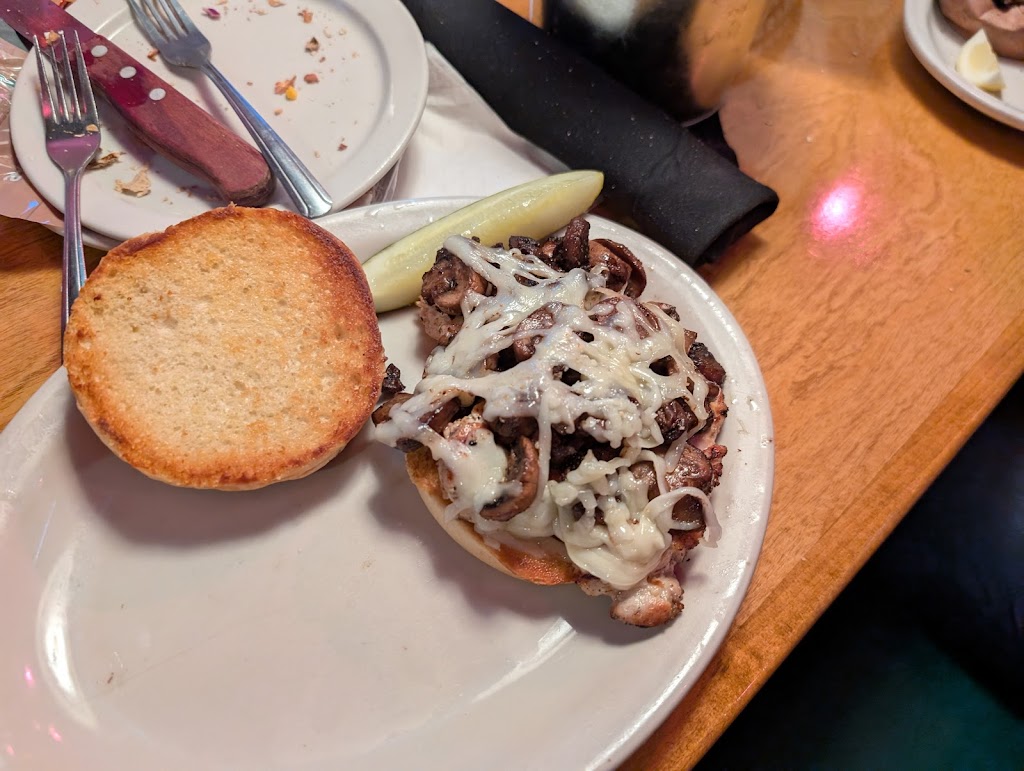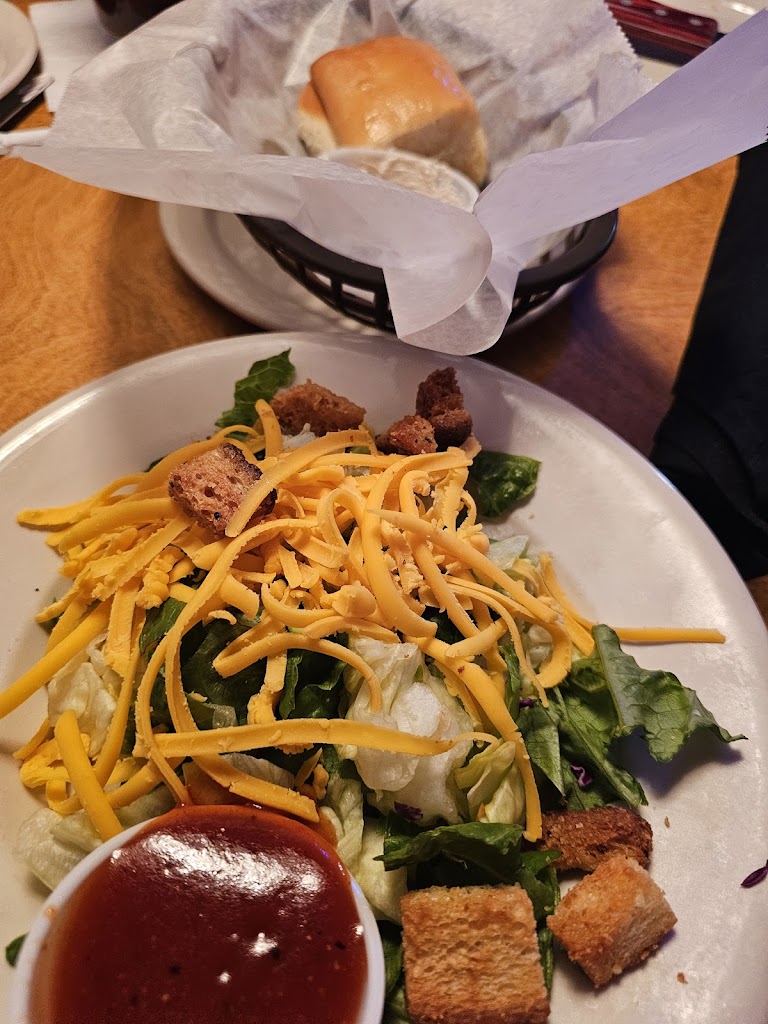 This was a nice experience. The Cesar salad was delicious. It was very busy on Sunday and due to various arrival we all were not able to sit together. The waitress kept forgetting my Aunts food (wine and side of broccoli). The Long Island was really great! My Ny Strip 8oz steak was delicious. The fries were great and Mac was decent. The bread was delicious although the first round was not glazed. Overall it was wonderful and we were celebrating a birthday so saddle option for a man was hilarious! The whole restaurant clapped for the birthday shout out! The game was playing so it was a lovely atmosphere! I was amazed to see a bison head display!!! So cool!