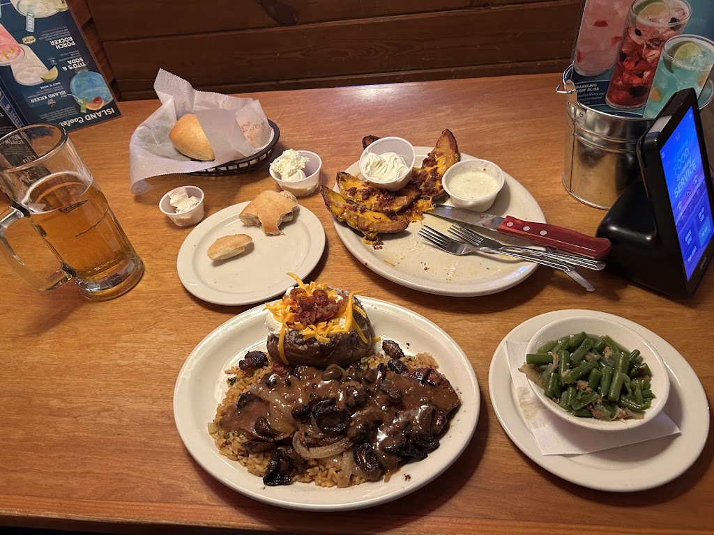 Had great service and yummy food, we enjoyed that we could have louder conversations and laugh on a Friday night. I really liked that the general managers personalize their location by listing their favorites and checking up on us that everything was to our liking. The bread and butter is so addictive and we loved the peanuts and menu choices were fantastic. Onion cactus and steaks of course! Sweet potato was actually sweet
