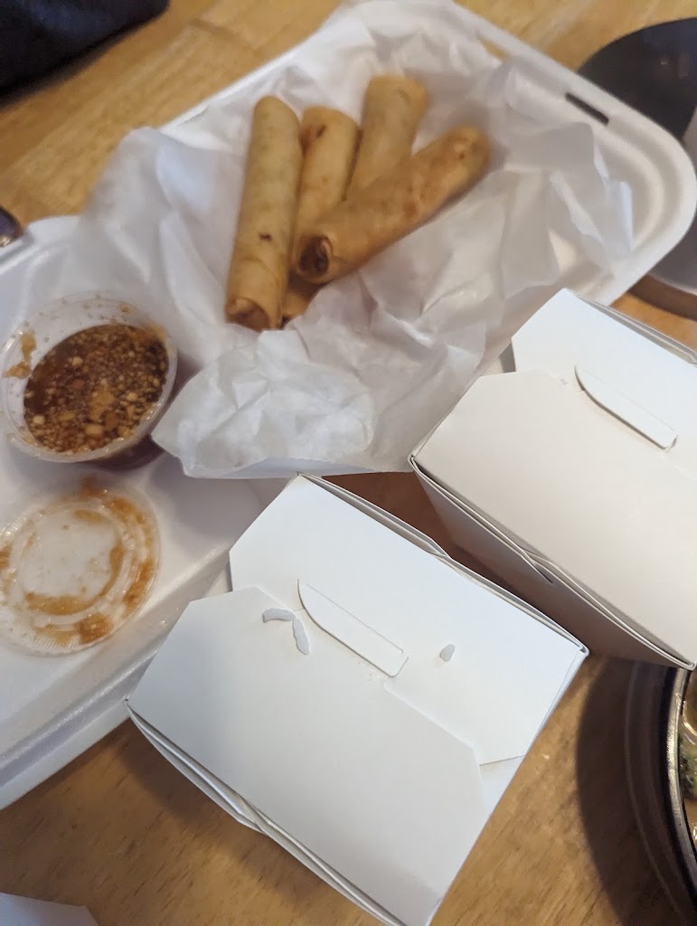 2020 edit: they’ve started putting some weird, dry grey “meat” in their spring rolls that is an incredibly off putting texture. The past two times we did take out, the person working the register was not wearing a mask, so if that’s a thing that matters to you, in either way, there you go.