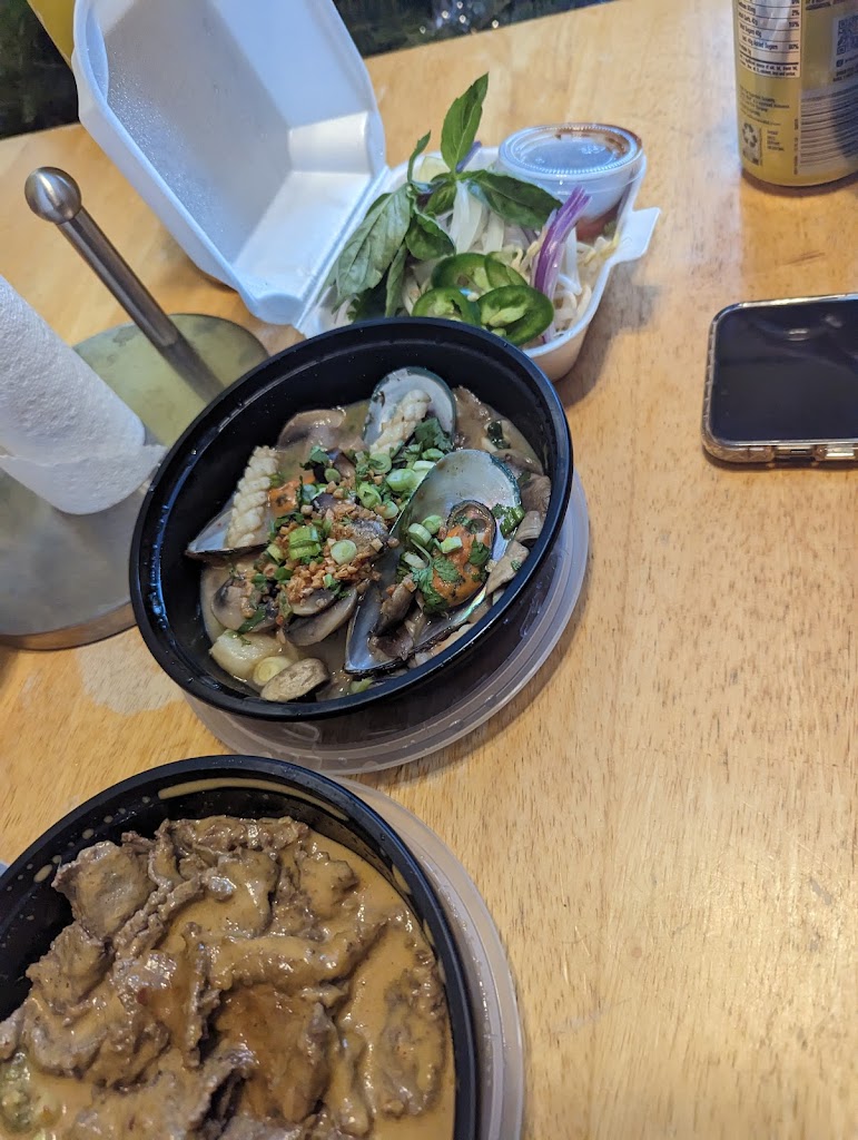 Just love this place! Ordered the seafood pho after working on house projects all weekend. Didn't want the go-to pizza which always stinks up the car for a week. Healthy, hearty, delicious food at a great price. This really made my day go from hangry to happy. Folks there are helpful and friendly.