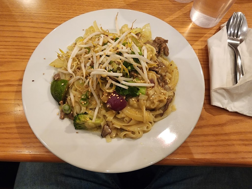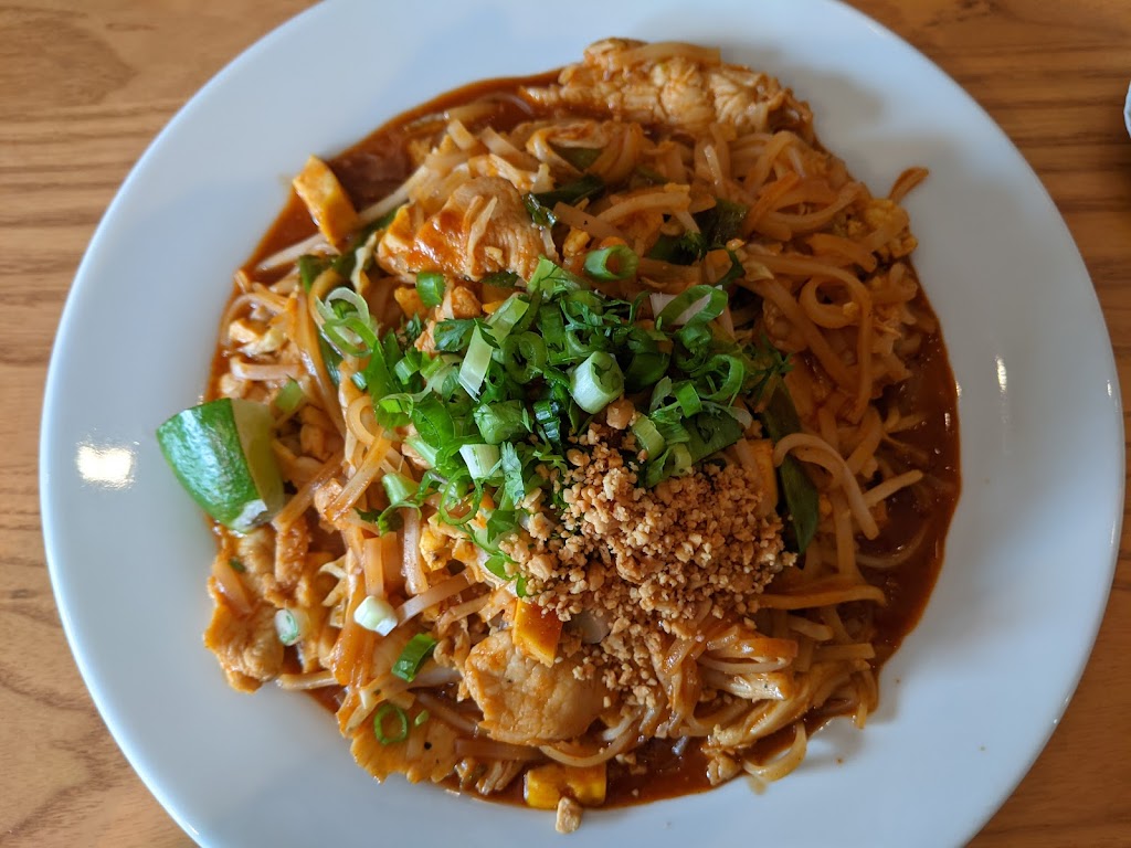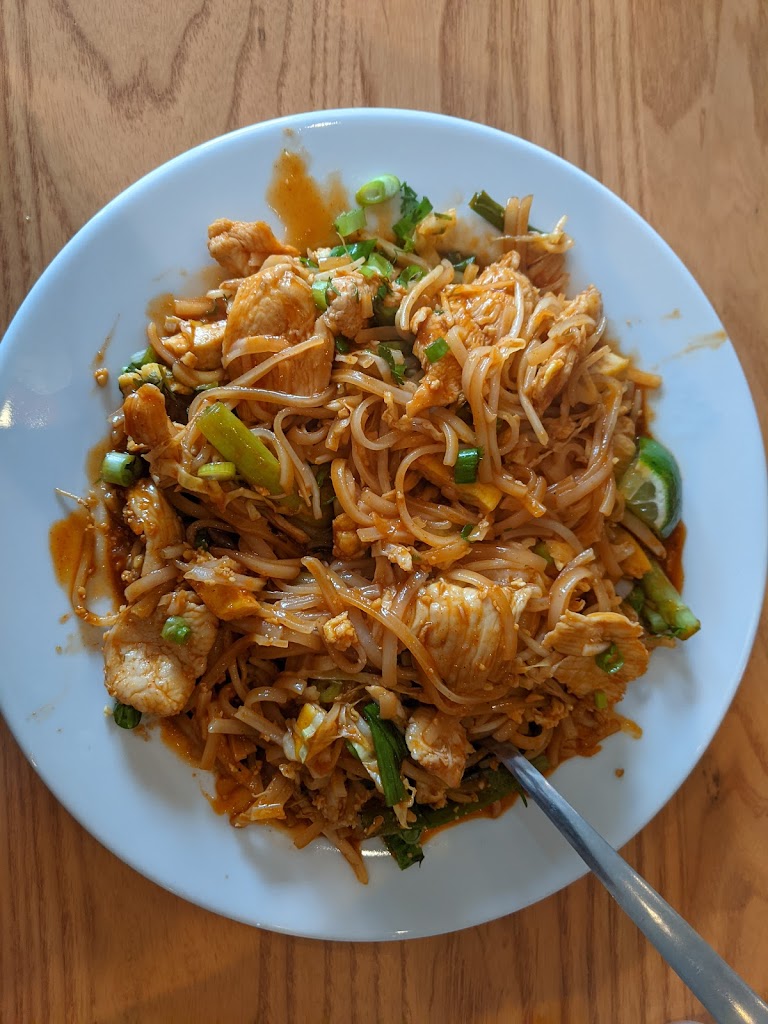 Great Pad Thai. I got the 2/4 spice and it was mighty spicy (for a midwesterner). Great flavor and a lot of food for your money. Will be back soon.