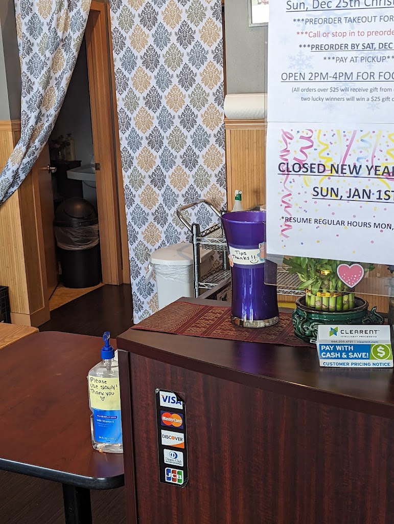 Went to the restaurant a while back and got food poisoning it was the fresh spring rolls with shrimp. Just wanted a little snack after my work out and instead became very sick. I’ve never been back since and don’t plan going back.