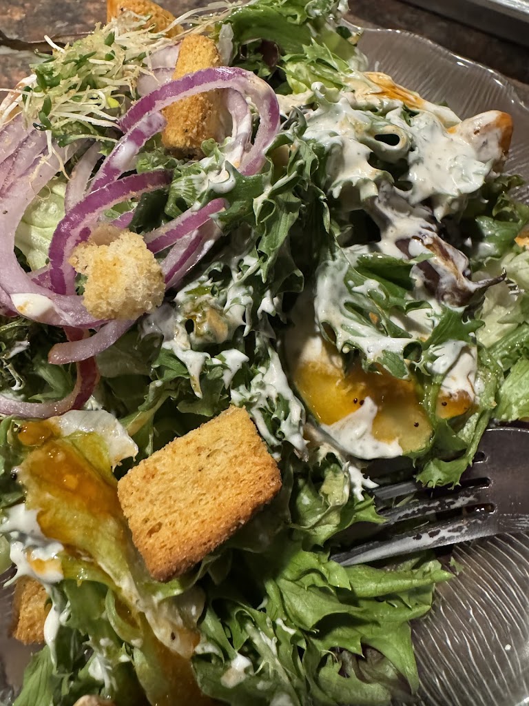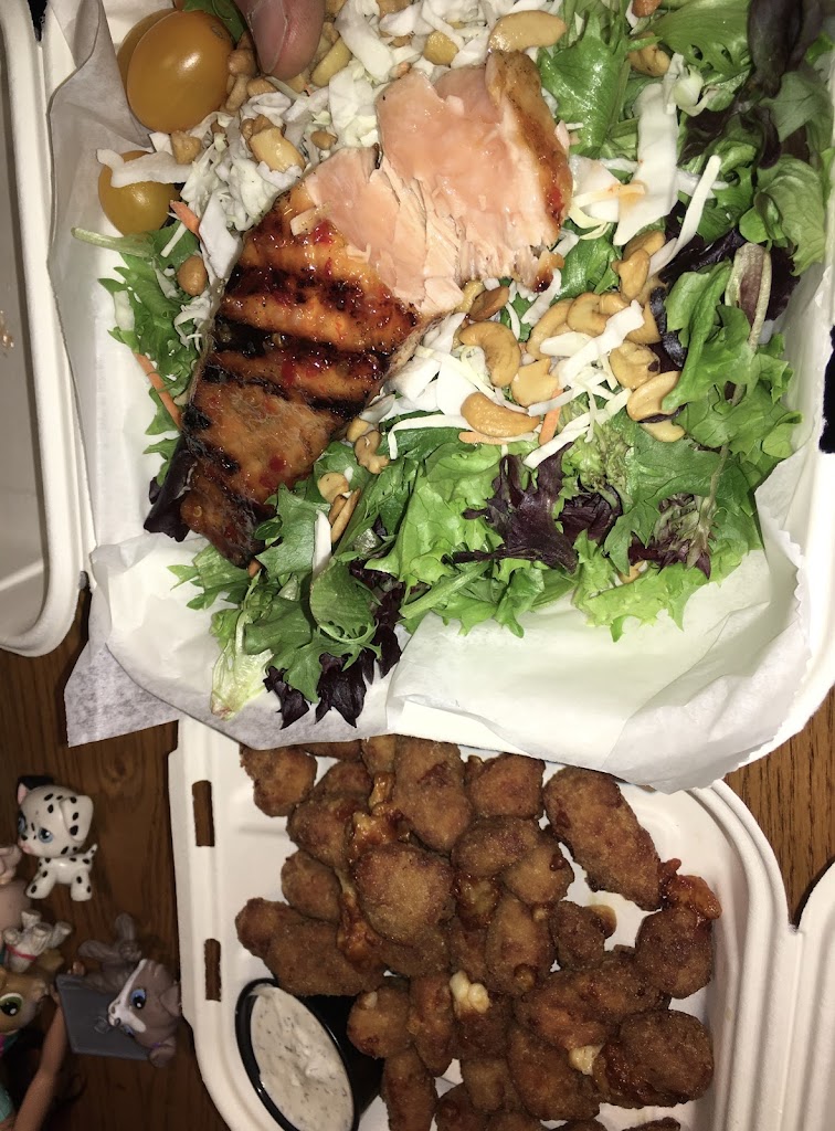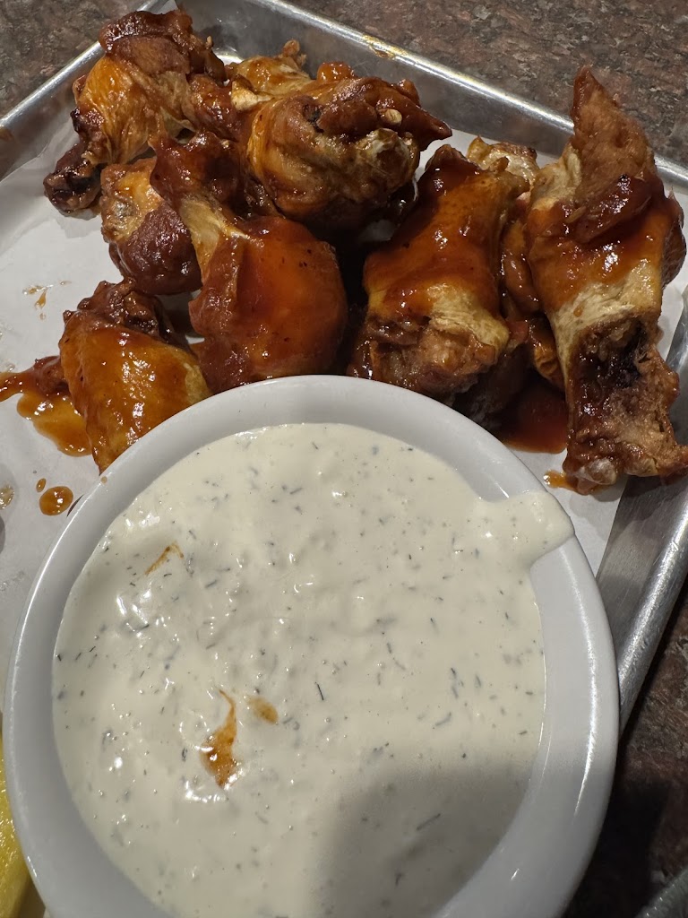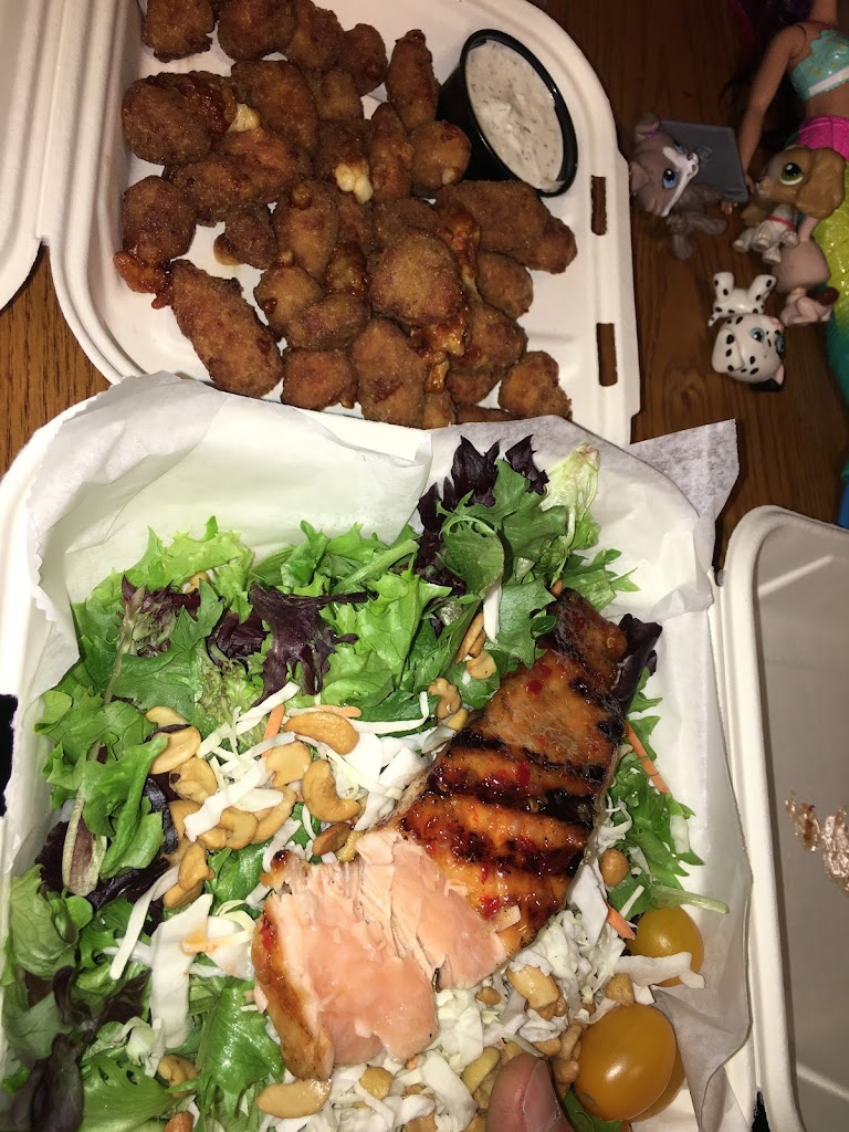 We ordered the full size chili Asian bone in wings with a side salad. The wings were decent size and had a nice sweet flavor