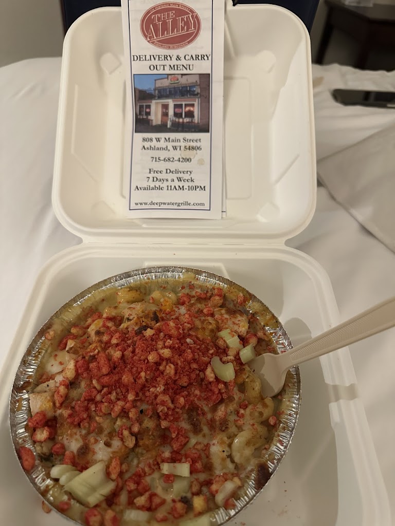 My husband and I have been traveling from St. Louis to the Up. In the last 8 days we have everything from fast food to restaurants. Tonight we were completely blown away. The was absolutely incredible amazing I had the buffalo chicken mac and cheese my husband had Caesar salad Wisco Frisco burger it was cooked perfect. We were so full it was hard to stop. We have all been there, where the food is good you don’t want to stop but you stomach is like please no more. Delivery so to our room not the front desk. He was extremely nice well mannered and polite. People like him just don’t exist anymore. Trust me, I have 2 business of my own.They told us 45-1 hour for delivery but he was he way before that. Food was hot felt like it just came out of the kitchen. Prices oh my god, are normal prices. Most restaurants with food like this would charge so much more. (Not always the best way to make money) keep the price range and people will keep coming. I cannot say enough about this restaurant. All I can say is if your restaurant is doing well take some lessons from them. They got it going on!