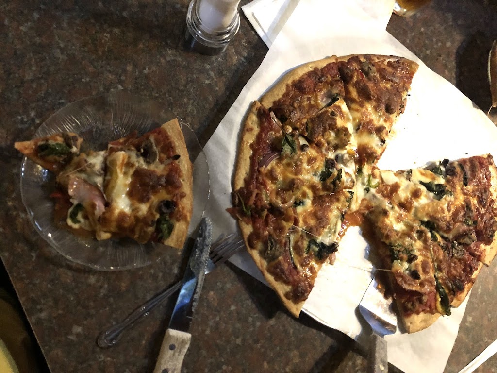 The Works pizza was awesome! Perfect, tender crust. Plenty of delicious toppings.