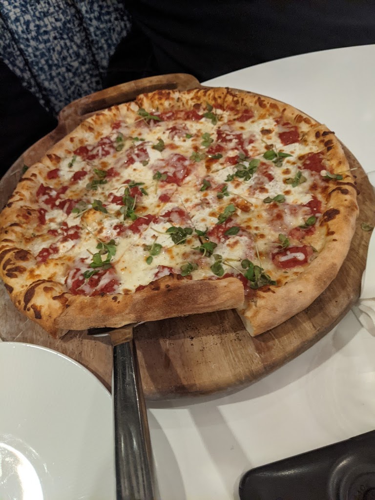 this place. It’s very new and fresh and well put together Didn’t know it was a hotel restaurant till we got there. Located inside the Hilton Hotel, this place is amazing. I recommend checking this place out for tasty appetizers, pizzas, drinks and awesome services