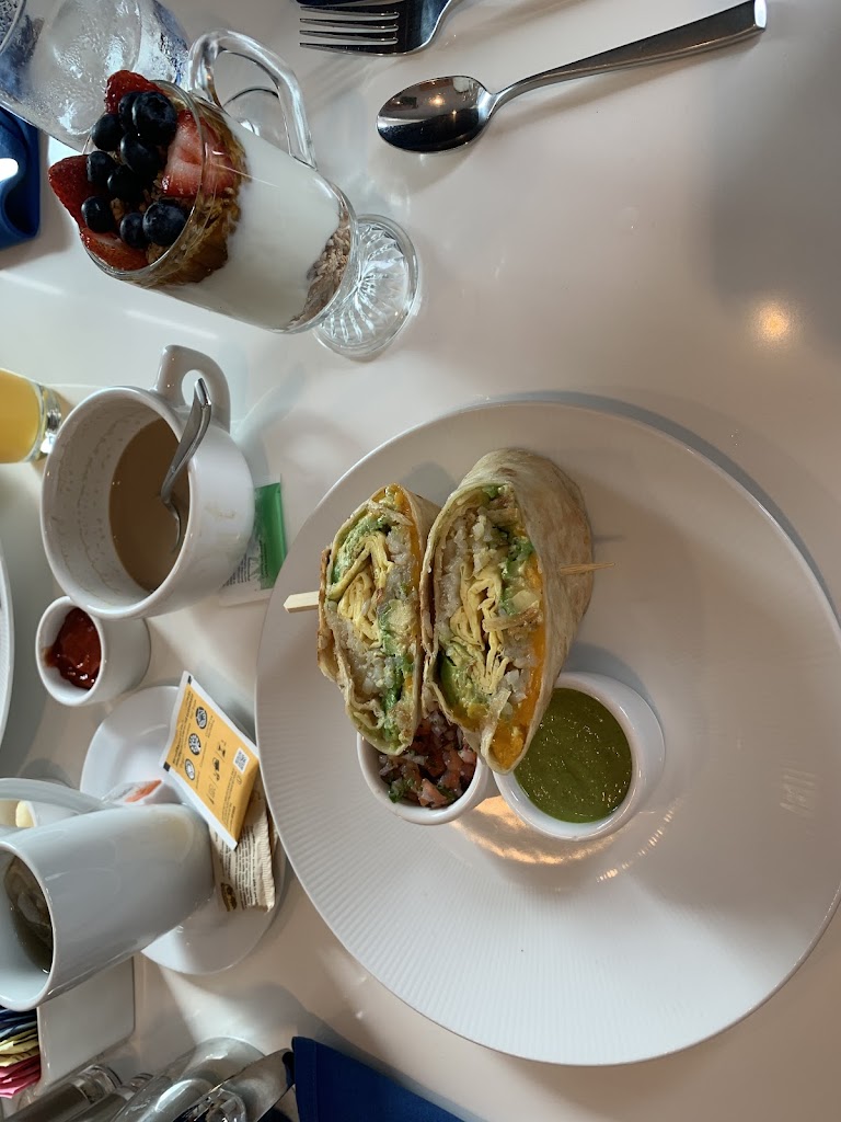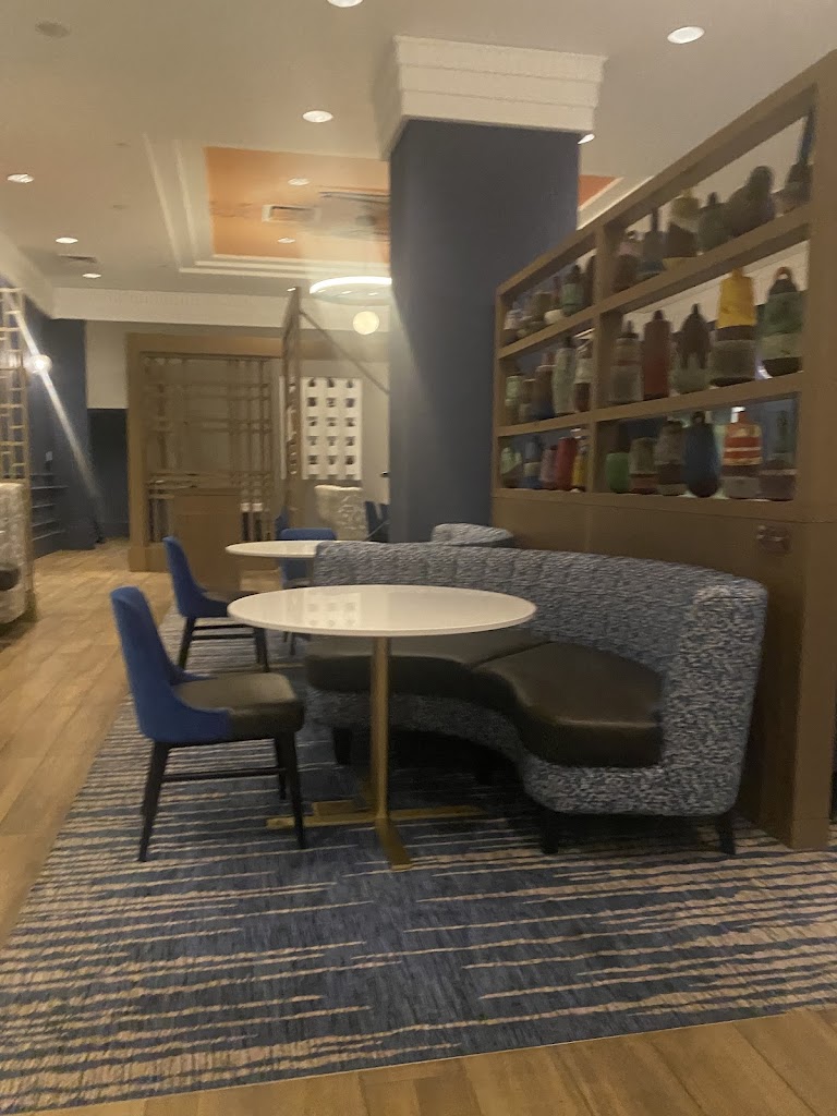 Next time I stay I’ll get the coffee (NOT the Starbucks out if a carafe in the lobby, it was not good) the fresh brewed coffee & cocktails they did have were good, I like cheap red wine & that was good, but skip the food. The view is nice so it’s worth taking the time to sit & enjoy with a beverage, but skip the food.