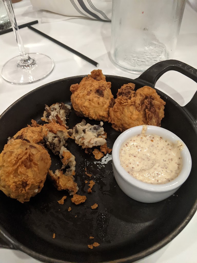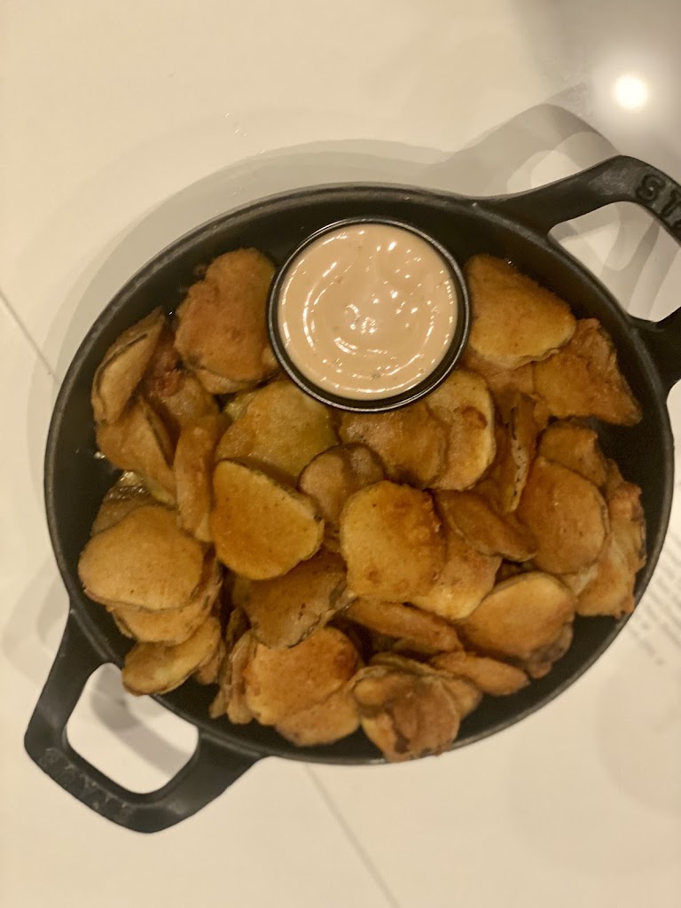 Fried shrimp were ok, cooked correctly & nice breading, but no flavor, no contrast element, literally a few slices of pickles - like standard grocery store pickles, less than you’d put on a burger - and that’s it for $20+. So disappointing.