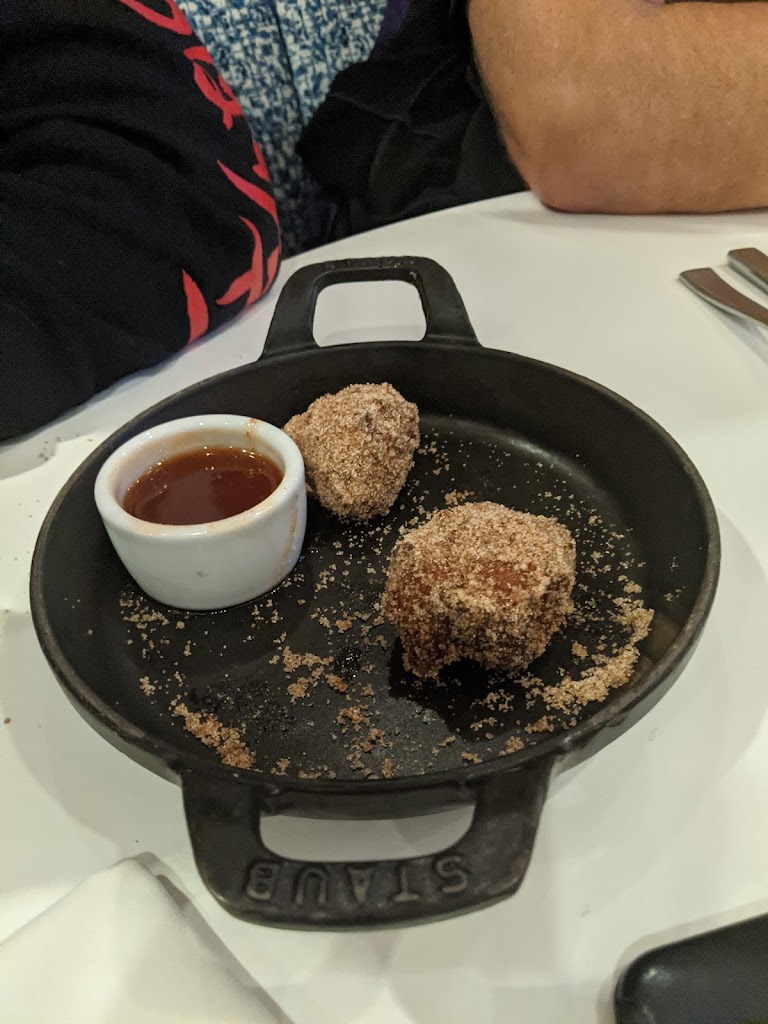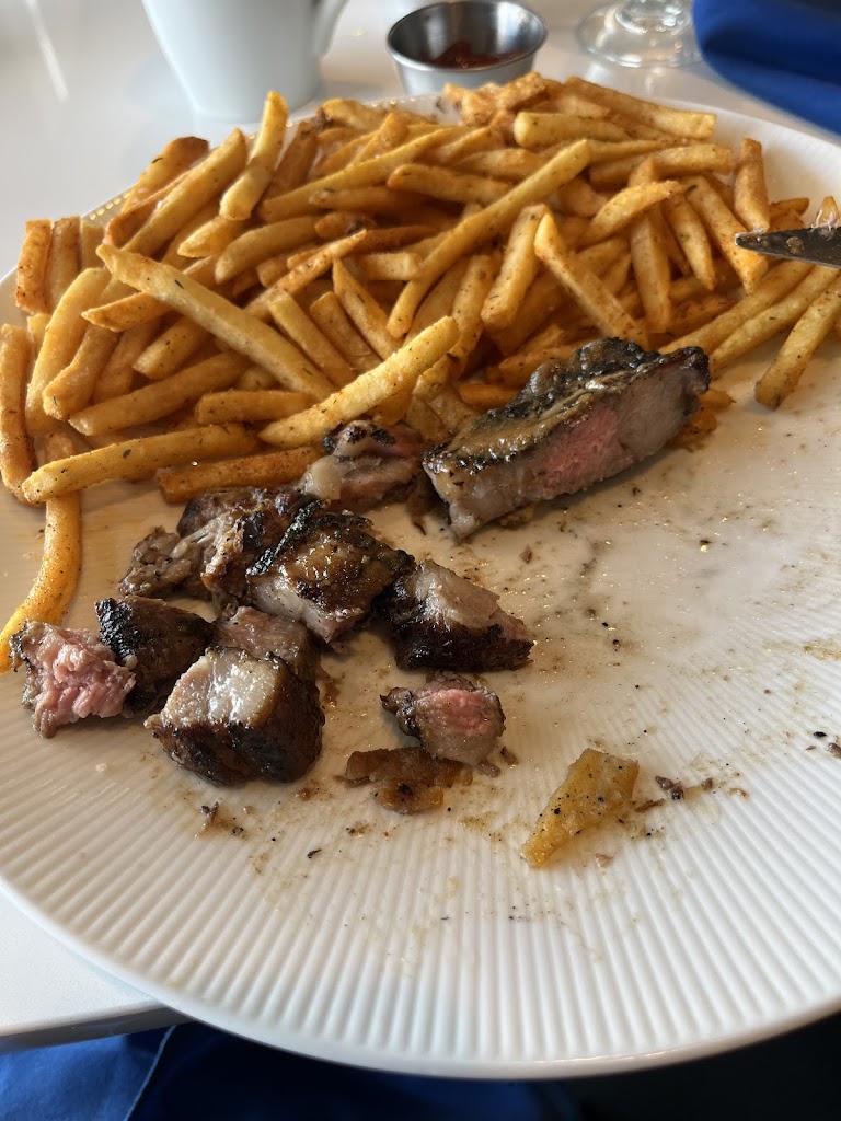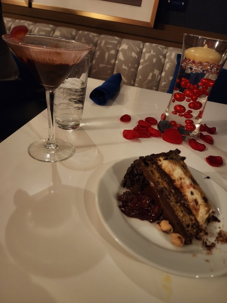 Chocolate cherry cake, same issue, no cherries, very mediocre. They didn’t mention that they were out of cherries, which the dish is named for, just served it & left.