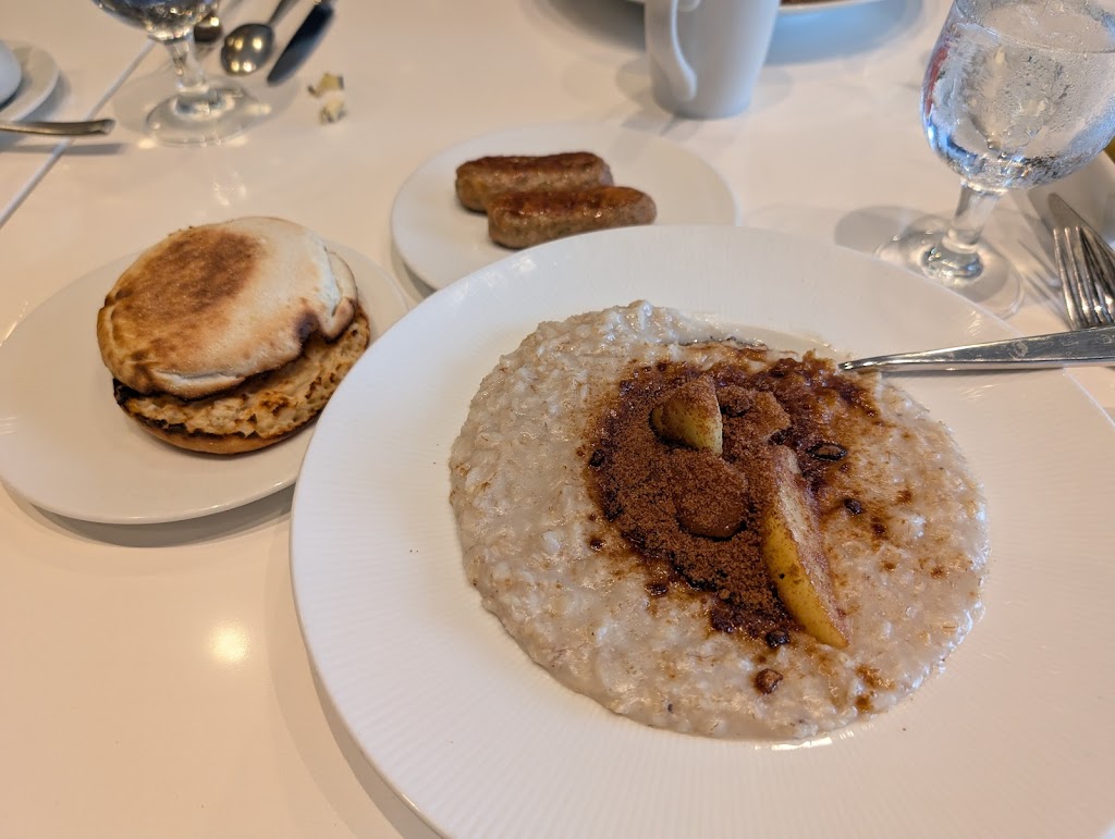 Food is mediocre. Went for dinner, salmon was over cooked and Brussel sprouts dried out. Peach cobbler was burnt. Gave 2nd opportunity and ordered breakfast. Am not pleased. Service is slow and inattentive.