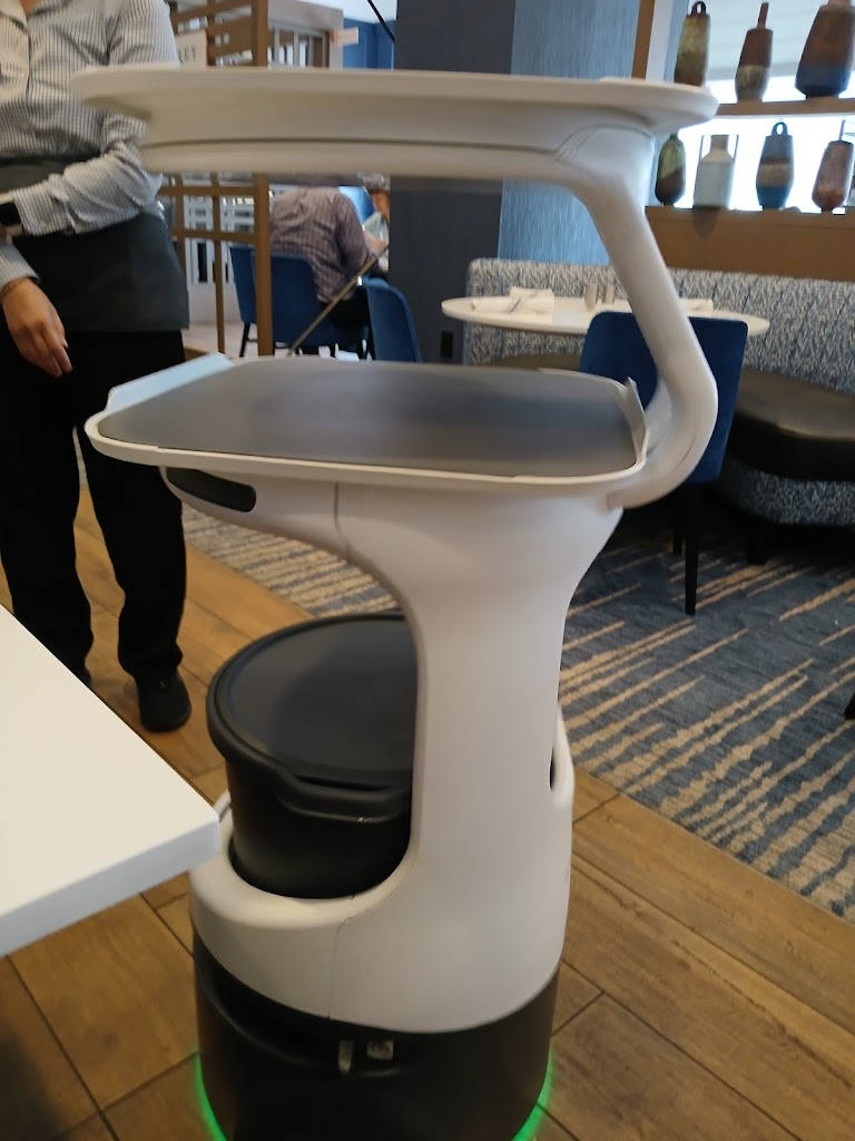 As we glanced through the menu, my daughter opted for the Butter Herb Papaderrele from the kids' selection, while I decided to try the House-made Papaderelle. After a few minutes of a casual conversation with my daughter, a surprising robotic tray named Munson, rolled across the floor and delivered our food.