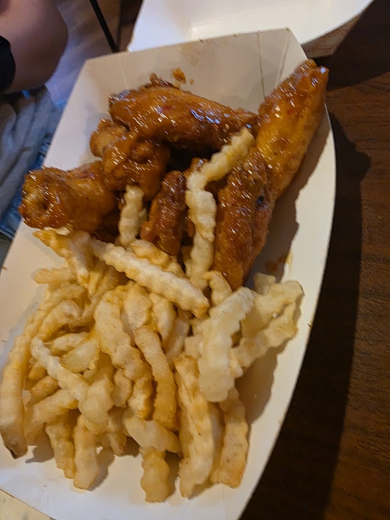 Good wings. Hot and done well, SUPER rude bartender until 5. As a bartender myself, ... eeish!