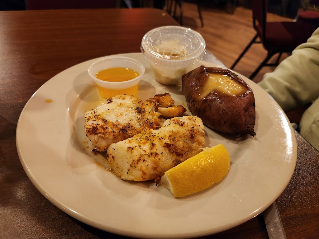 Really good fish fry. They have walleye, blue gill and cod, baked or fried.