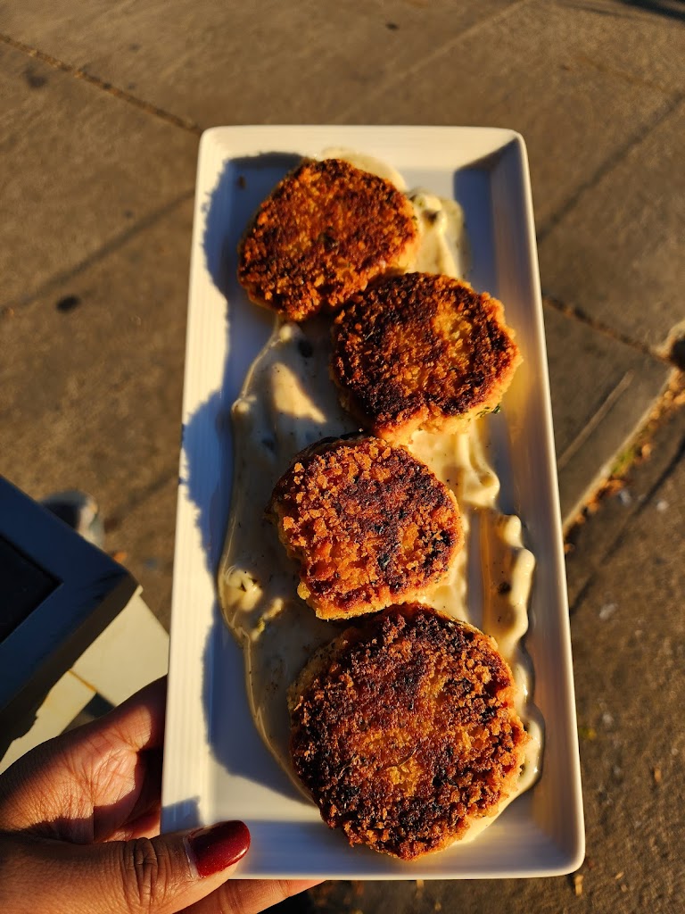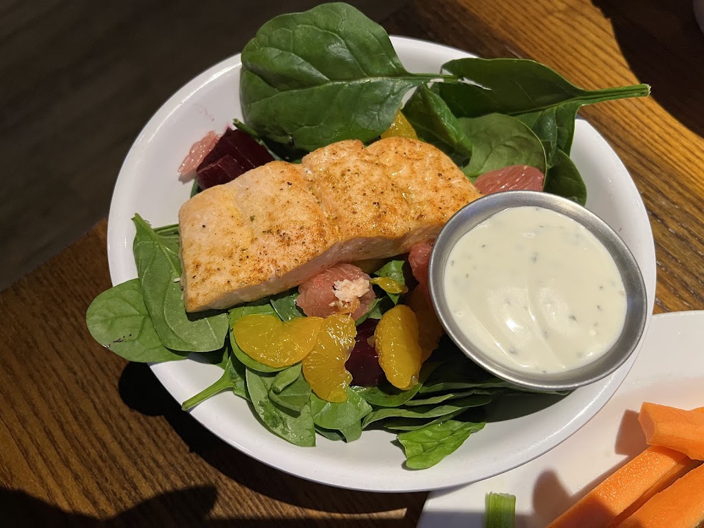 The salmon crab cakes were disgusting too much salt sought and very small for the price. The spinach artichoke dip was extremely too thick too much cheese like glue very nasty item on there menu. The cauliflower bites were delicious. It's In a decent location but they do not give you enough food for the price of the Dinner entrée. I don't even remember the chicken that I had but it was not good either. I visited before 7o'clockpm. The server also was not very Attentive.