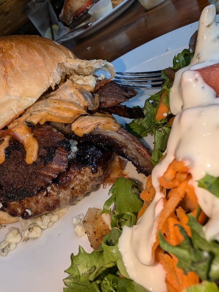 The Milwaukee cheesesteak sandwich was full of flavor. House made chips super crunchy. Buffalo chicken salad was full of chicken. The big game burger had two thick slices of beef brisket. Our server was prompt and very friendly.