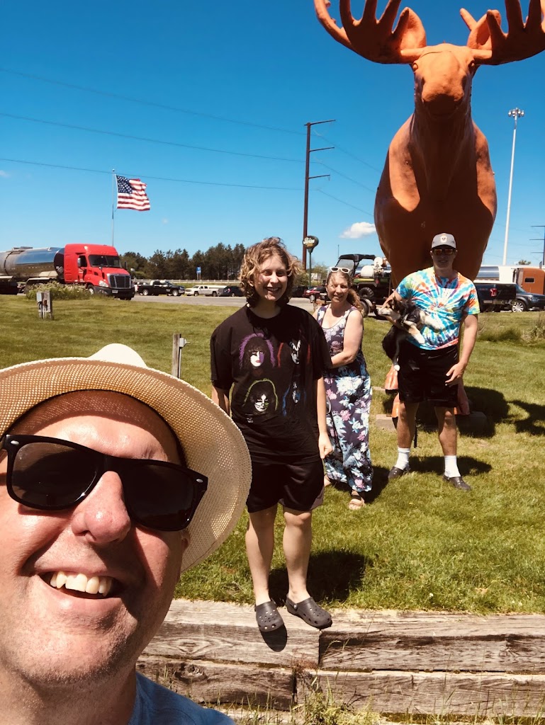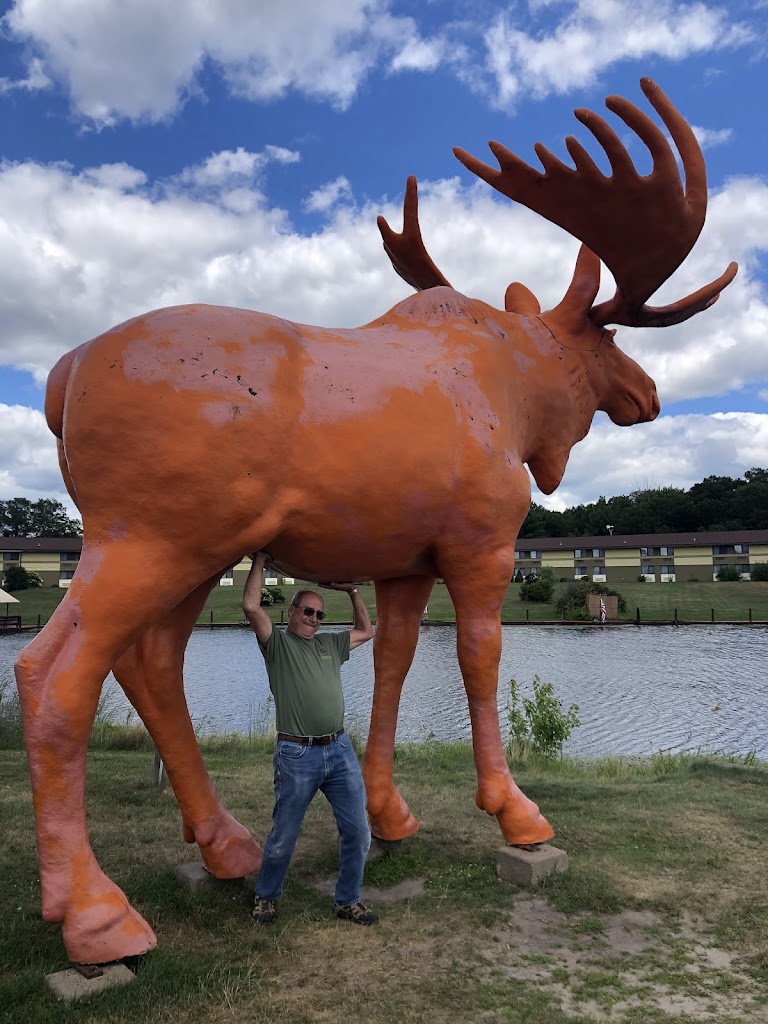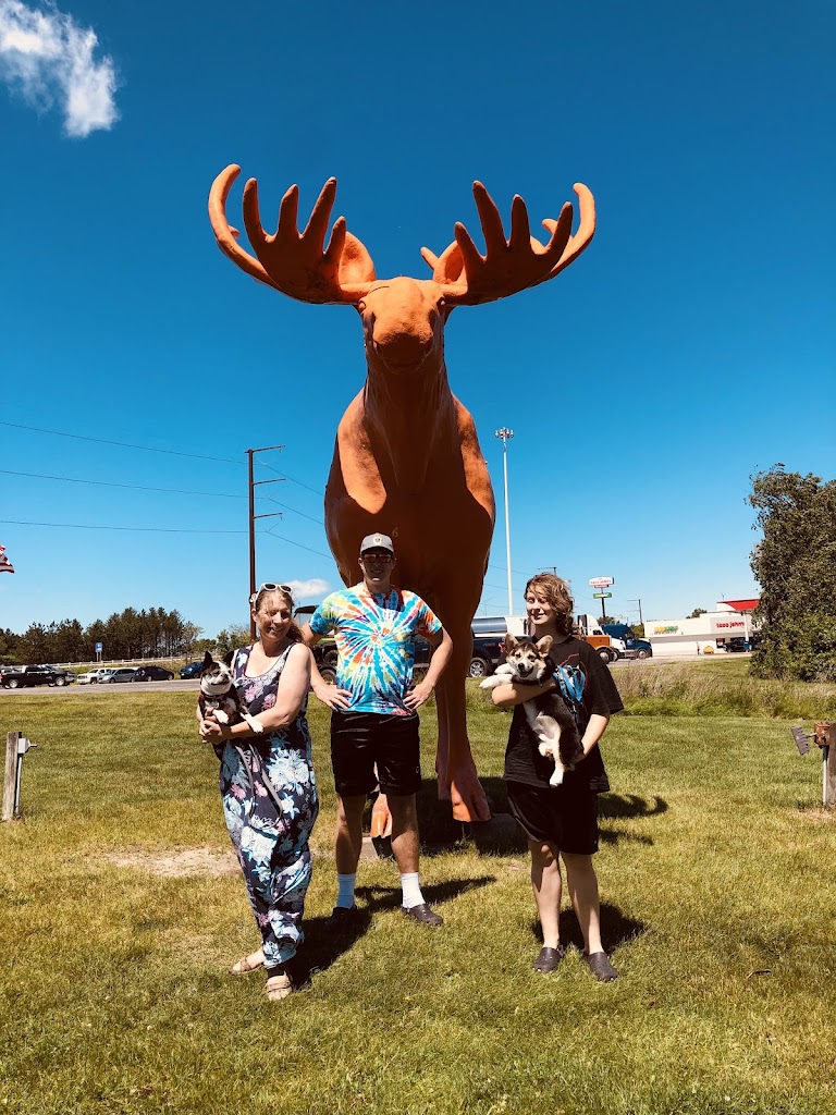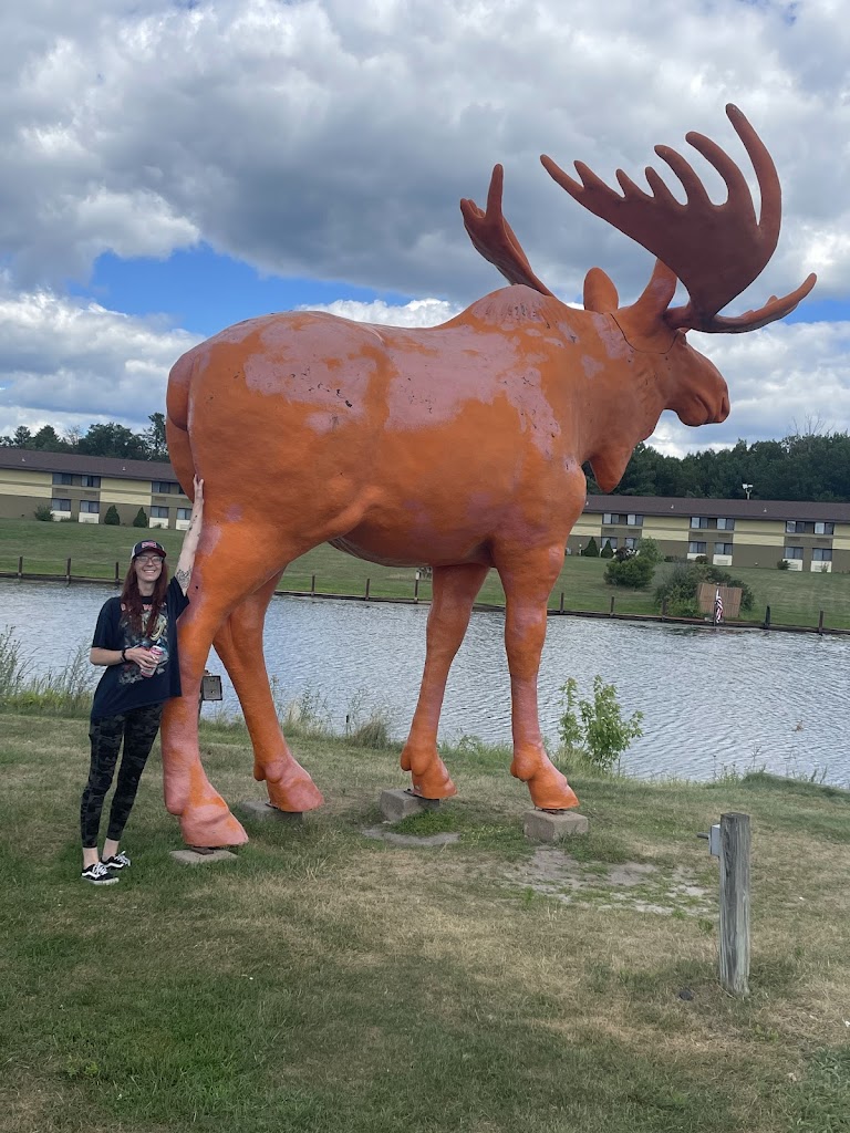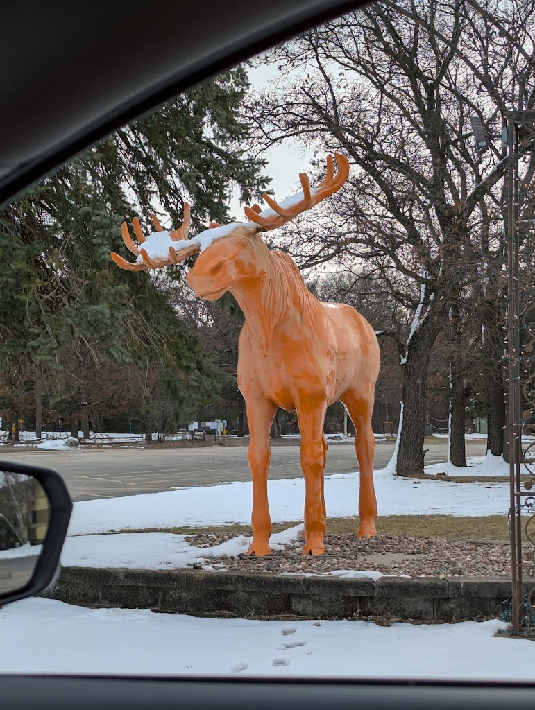 We always love stopping here on the way to Minnesota to take a picture with the Big Orange Moose! Good place to stop for gas and food too! Taco John’s and Subway here.