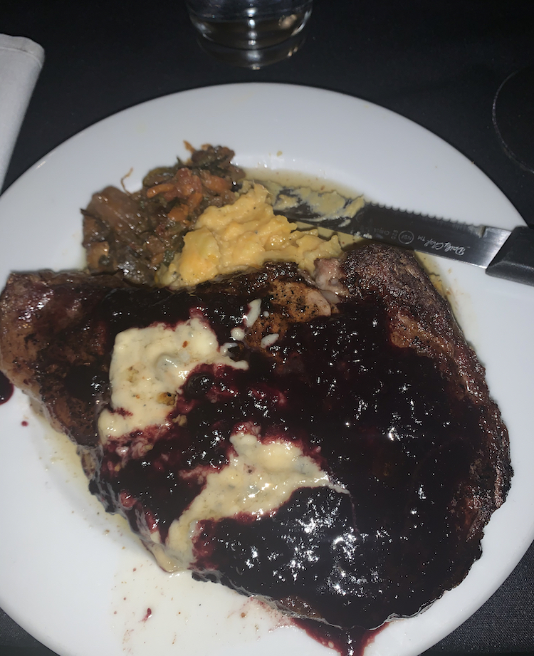 The most excellent steak we have ever had! We ordered the spinach and artichoke dip and the rib ribeye steak to share between the two of us. Plenty of food for us. Also had an exceptional old fashion with bourbon from a local distillery. Really, really great local place! Worth every penny for really amazing food!