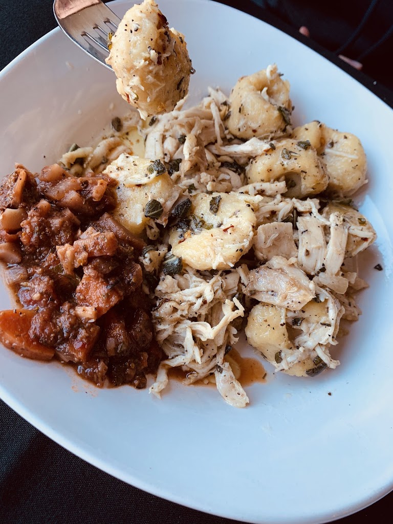 We had planned a family style meal: Mediterranean chicken, braised short rib, roasted red potatoes& red curry pad Thai (gluten free & vegan) Asian sesame salad (GF) & late night mini Chicago dogs, charcuterie board & homemade red roasted hummus w veggies & bruschetta.