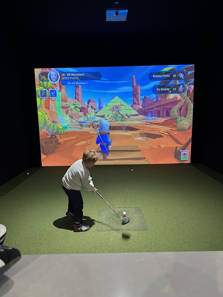Typical Indoor golf simulator setup. Nice and clean and good layout. Pretty expensive and would need a special reason to go back.