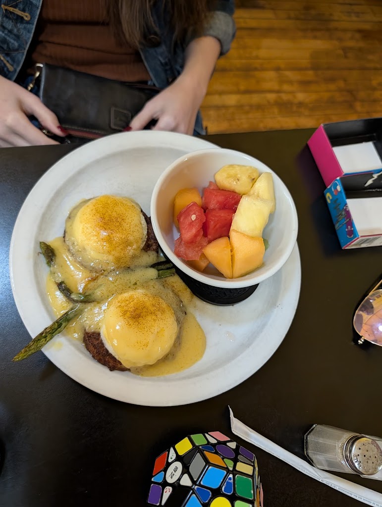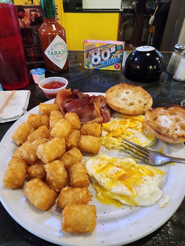 Good cinnamon roll. Had the Eggs Benedict and the Breakfast tots. Food was good. Huge portions. Coffee was great. Fun 80s trivia cards on the table. No wait at 7 am.