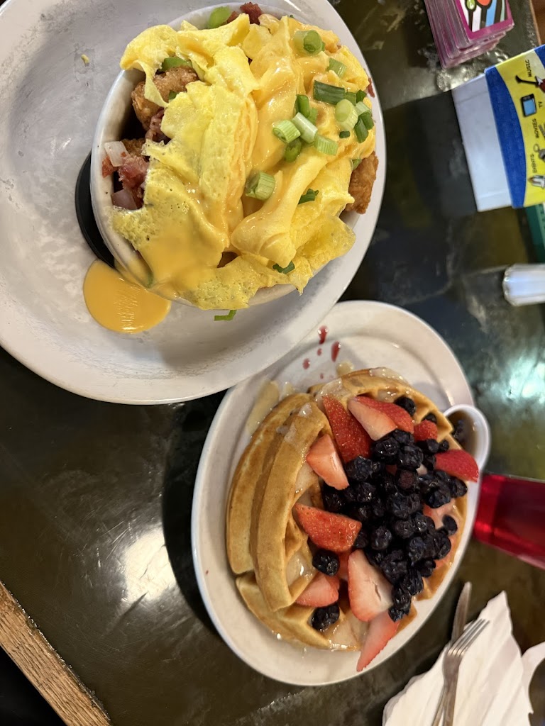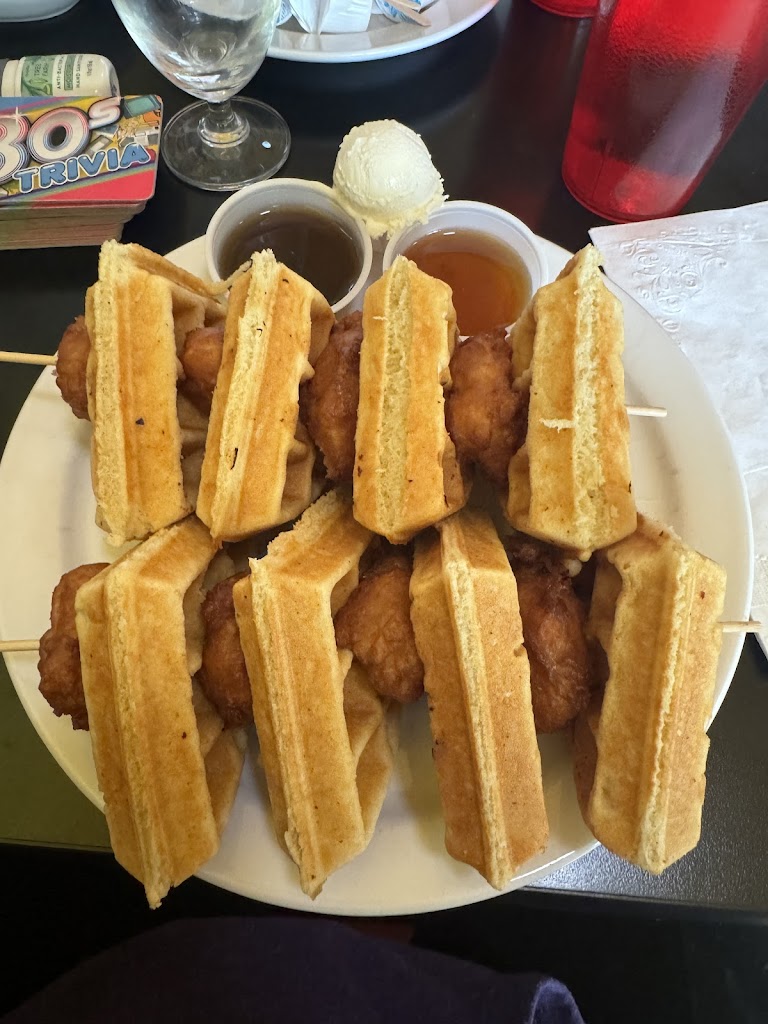 Fun place! Great food! I had the rueben omelet, it was great! Next will be the boneless chicken wings and waffles on a skewer with honey 🍯