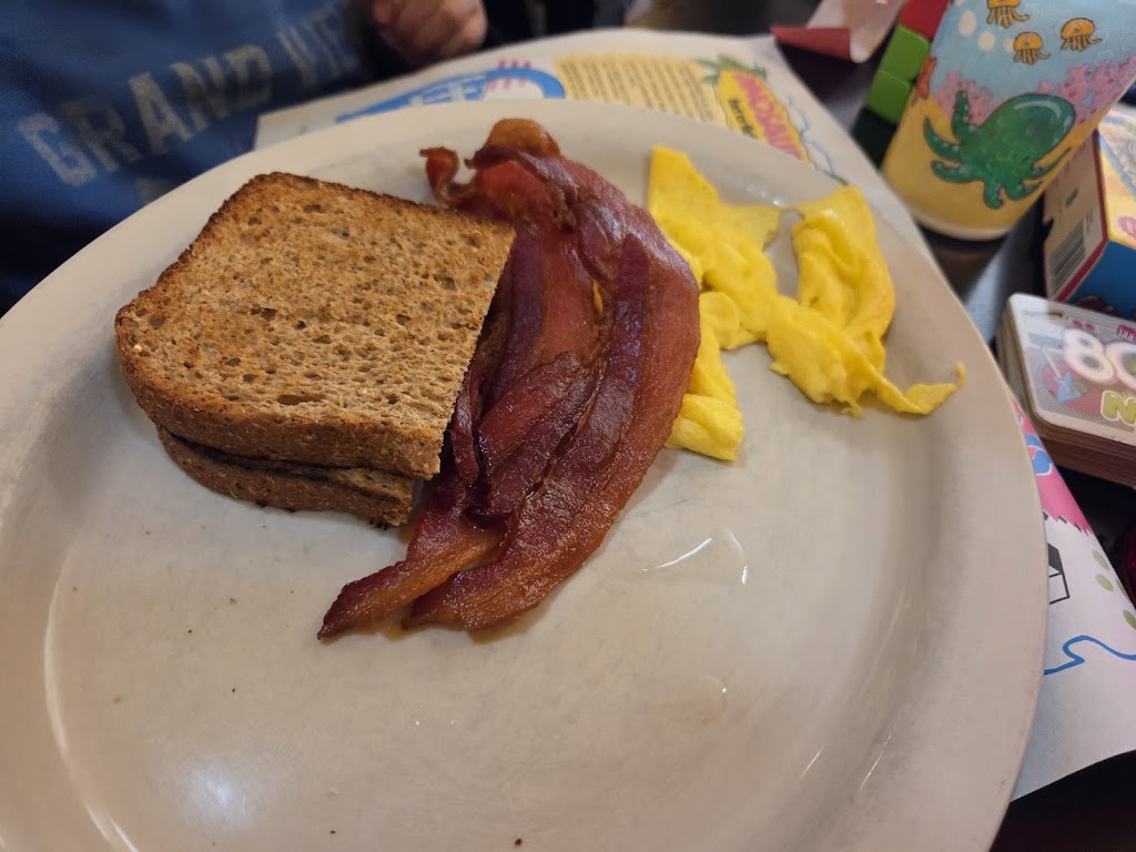 Great breakfast, friendly staff, clean, and unique atmosphere. I enjoyed the 80's theme throughout and the games at the table to keep the kids entertained while we waited for our order.