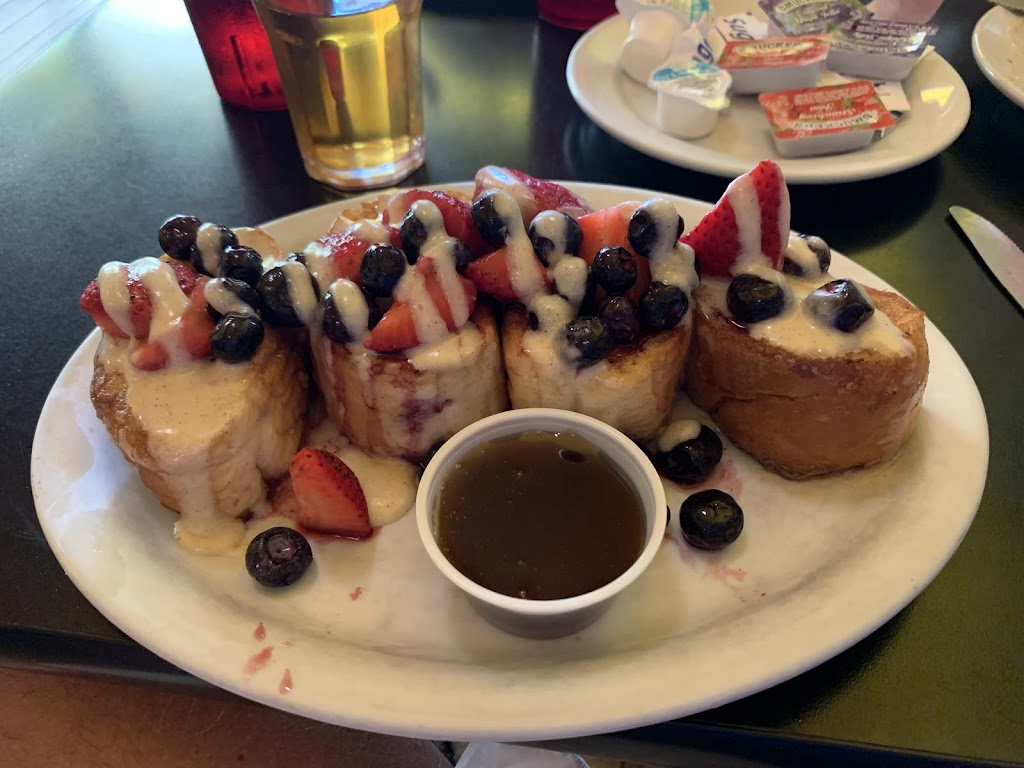 Happy, high energy venue. Bustling with patrons at 9AM. Beautifully plated entrees. Did not see this coming: Stuffed French Toast. Had to order. Did not disappoint! My breakfast guests also tried the veggie omelets. They couldn’t finish. Two guesses as to who did! 😉