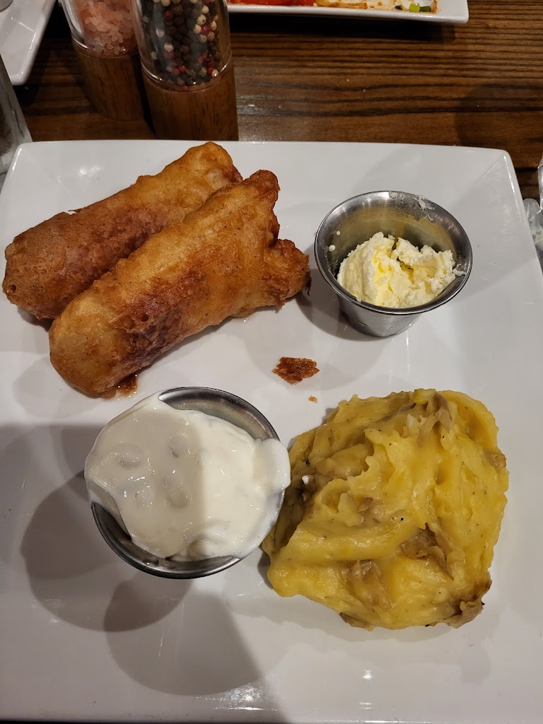 The fish was tasty and seasoned well. Sometimes too well as there was a whole garlic clove in the mashed potatoe.