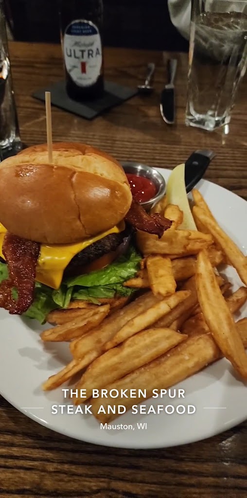 Having a summer cottage in Mauston has been challenging as the area is a little short on cool bars and great restaurants... Our luck changed last weekend when we tried The Broken Spur not only on Friday evening but for a return visit on Saturday. The first night we arrived at 4:45 PM and were told there was an hour wait... Really at 4:45 PM?? We went to the bar and ordered cocktails from bartender Jill... Great drinks and when we shared our concern over the hour wait, Jill disappeared and returned with the hostess who seated us immediately... Yeah Jill!! The wait staff (Kiki) was very accommodating and had a great sense of humor. She delivered a small tray of local cheese /crackers and a few other goodies which along with our cocktails kept us busy until the dinners arrived (it was a bit of a wait but worth it). Over the two visits in two days, we had the chicken and ribs, the salmon and the prime rib and loved it all along with some great crab bisque soup and fresh salads. I hesitate to recommend the Broken Spur because we will never get a table once the word gets out.