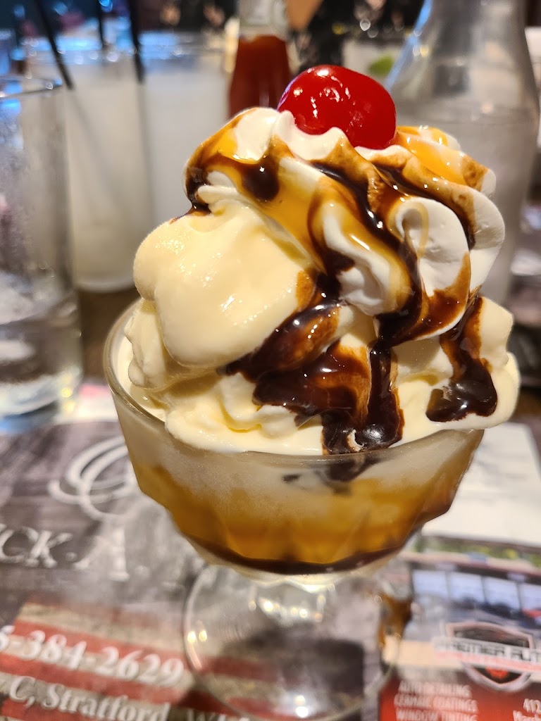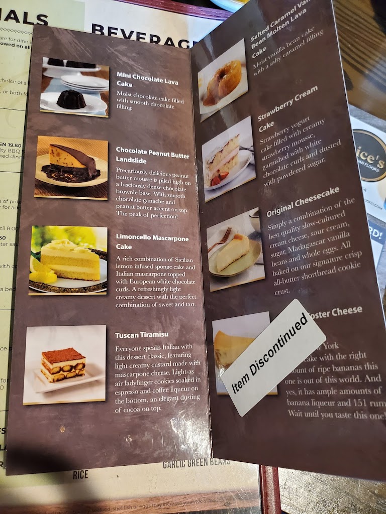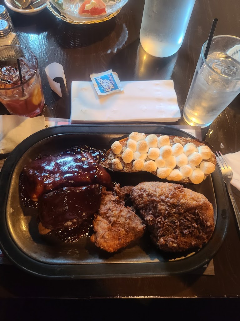 Husband's ribeye was meh, but the deep fried shrimp was good. Our waitress wanted to make it right, but was too late...just wanted to go. She was truly upset that we weren't all that happy & gave us each a free dessert. I wonder how many of those they give out in a night??🤔