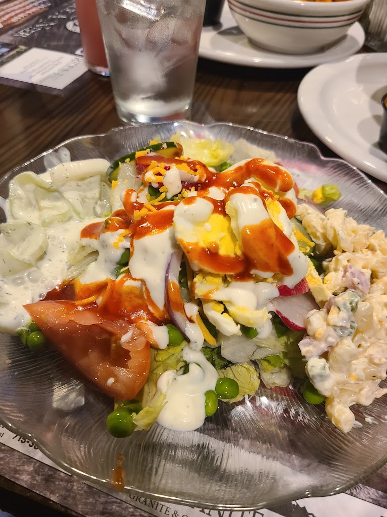 A bit out of the way, it is worth the drive. The waitress Becki was exceptional. She was pleasant and attentive. This was the first salad bar we have been to in a while and although smaller it was well-stocked with a wide variety of choices. The food was excellent. It was cooked well and came out hot.
