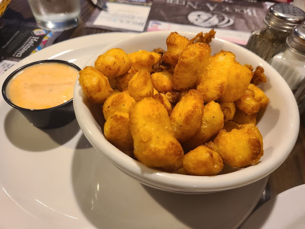 Steak and shrimp dinner on Wednesday and the cheese curds were awesome