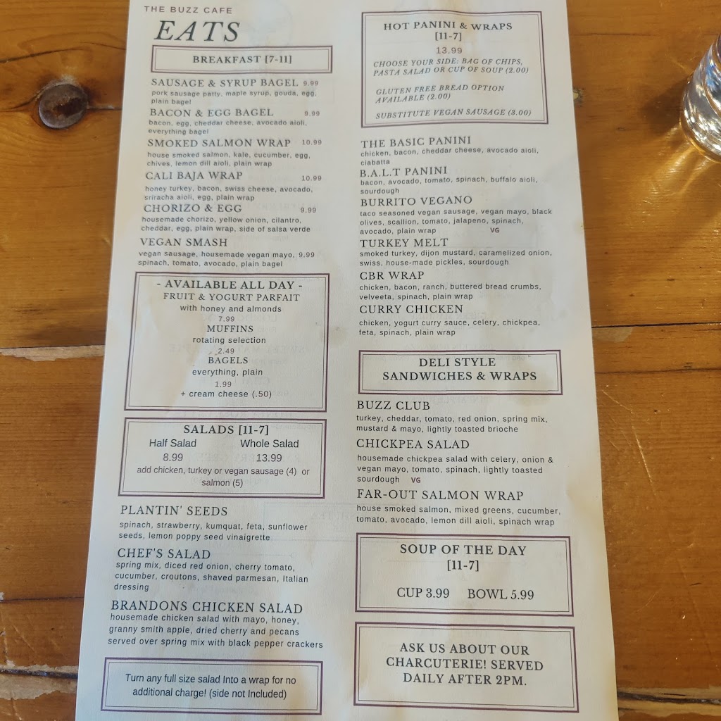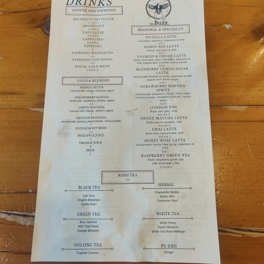 This use to be my favorite place in the whole world, I’d come everyday in the summer for 4+ years but it fell off hard after the last of the OG staff left, Lexi, i’ve ordered multiple disappointing drinks and food menu items since TRYING to give it the benefit of the doubt in hopes it would come back but the buzz I knew and loved is dead, every drink now tastes like it’s made by a bunch of high schoolers, I was willing to forgive the watered down milky matchas and chais but after they changed their cider, my favorite drink of theirs, to Indian Summers (basically just apple juice- it’s not unfiltered/ opaque), and got ride of the charcoal detox drinks this place lost it’s redeeming qualities. Rest in peace Buzz 🐝