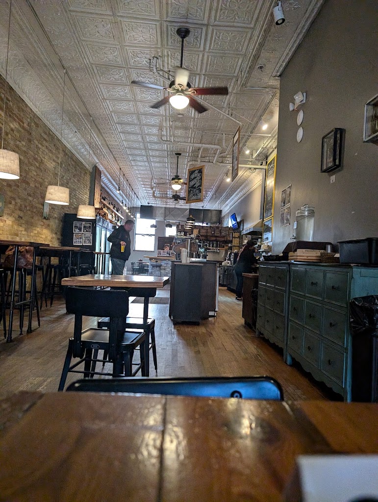 This is a really cute spot in downtown Kenosha not far from the courthouse. It has that great rustic feel that so many coffee shops are going for. My sandwich was also very flavorful and well done. The problem, is that I ended up spending close to $20 for a very small Panini and a soda. The prices, while maybe defensible in a Chicago market, just can't be justified on this side of the border. If price was not an issue, I'd easily give it five stars. But I wasn't really full after my lunch and I don't really know why I paid $20 for what I paid for. Maybe The vibes?