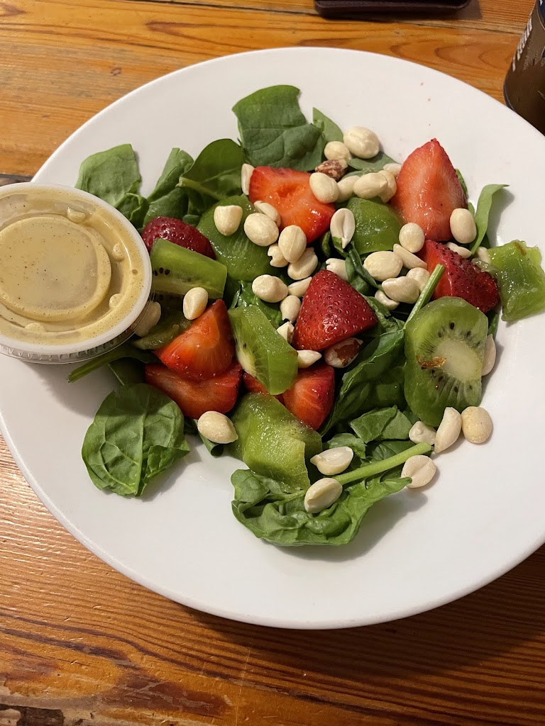 Nice beer brewed in Wisconsin. Strawberry field salad 1/2 size was nice. I ordered it knowing it was on the sweet side. If you are not into sweet salad there are other healthy options.